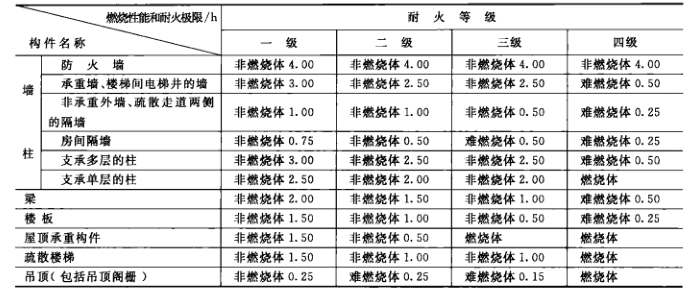 建筑物的耐火等級分為四級,各級建筑物構件的耐火極限和燃燒性能均不應低于1的規定。