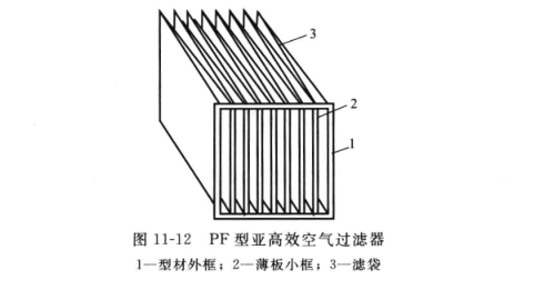 5μm范圍內(nèi)的塵粒。常用的PF型亞高效空氣過濾器的結(jié)構(gòu)如圖11-12所示。