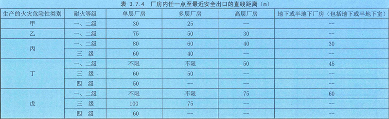 3.7.4 廠房內任一點至最近安全出口的直線距離不應大于表3.7.4的規定。