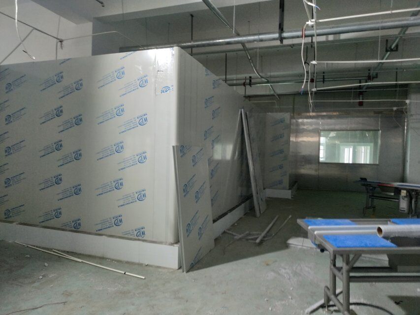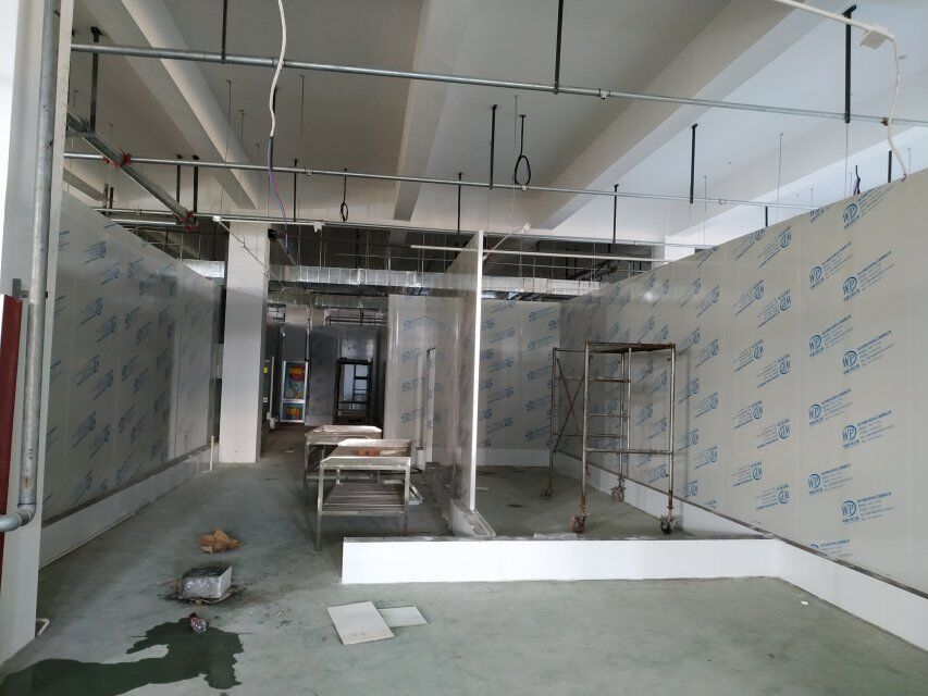 青島盛客隆食品有限公司廠房裝修現場,頂板,墻面施工
