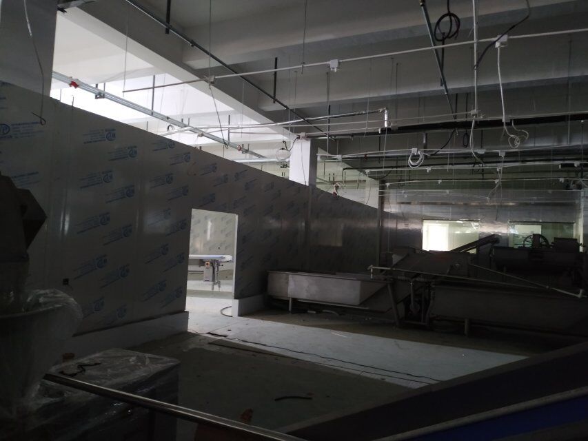 青島盛客隆食品有限公司廠房施工現場,圓弧安裝,設備傳送口施工完成