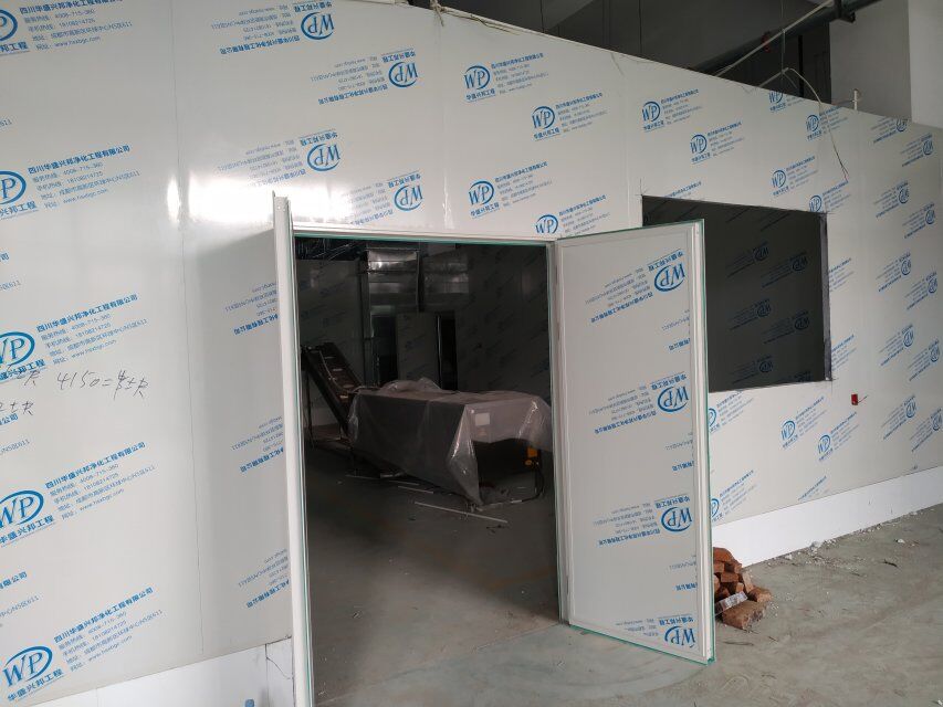 青島盛客隆食品有限公司廠房裝修現場,吊頂板,門安裝