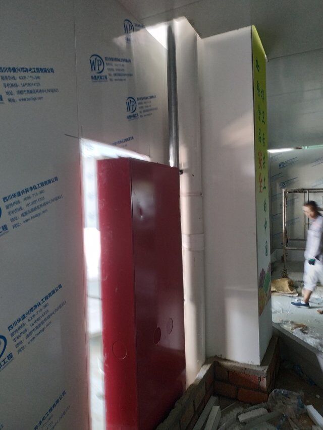 青島盛客隆食品有限公司廠房裝修現場,消防安裝,墻面開孔