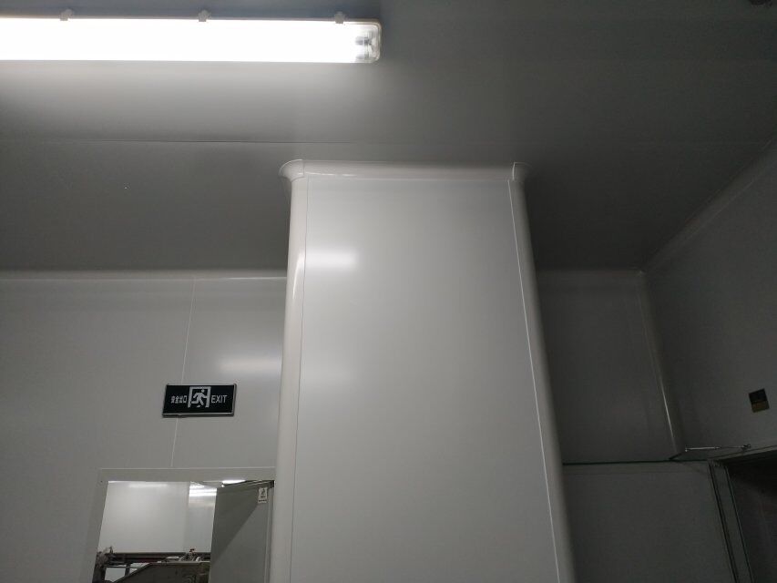 青島盛客隆食品有限公司廠裝修現場,柱子施工,吊頂板,墻板施工