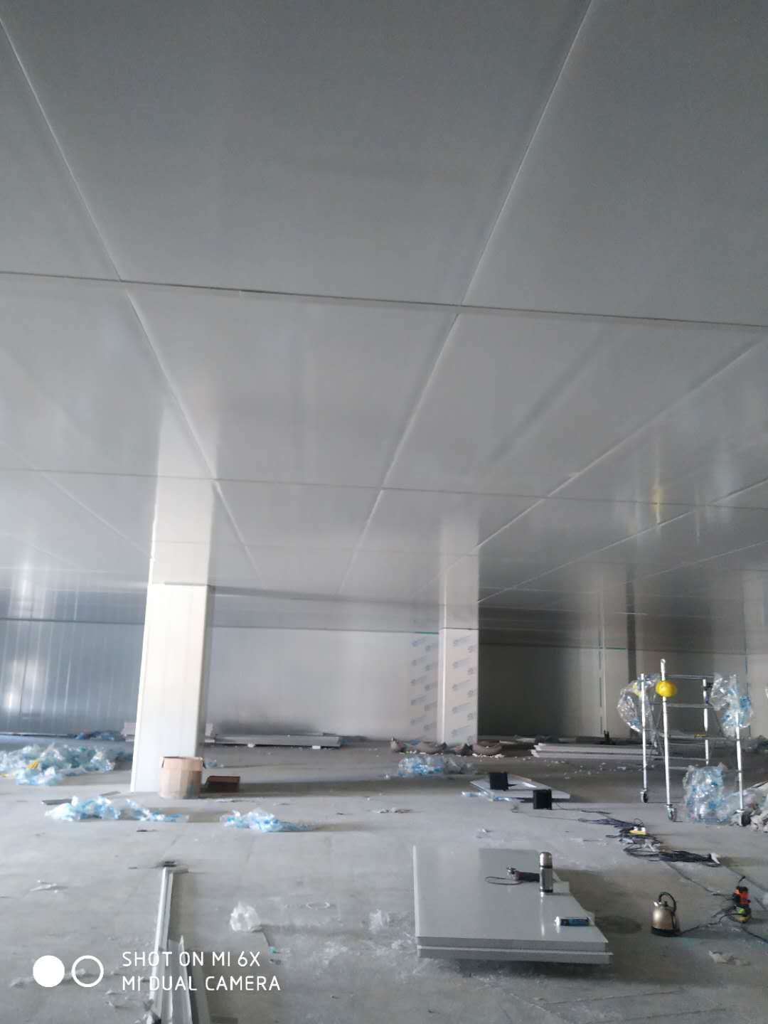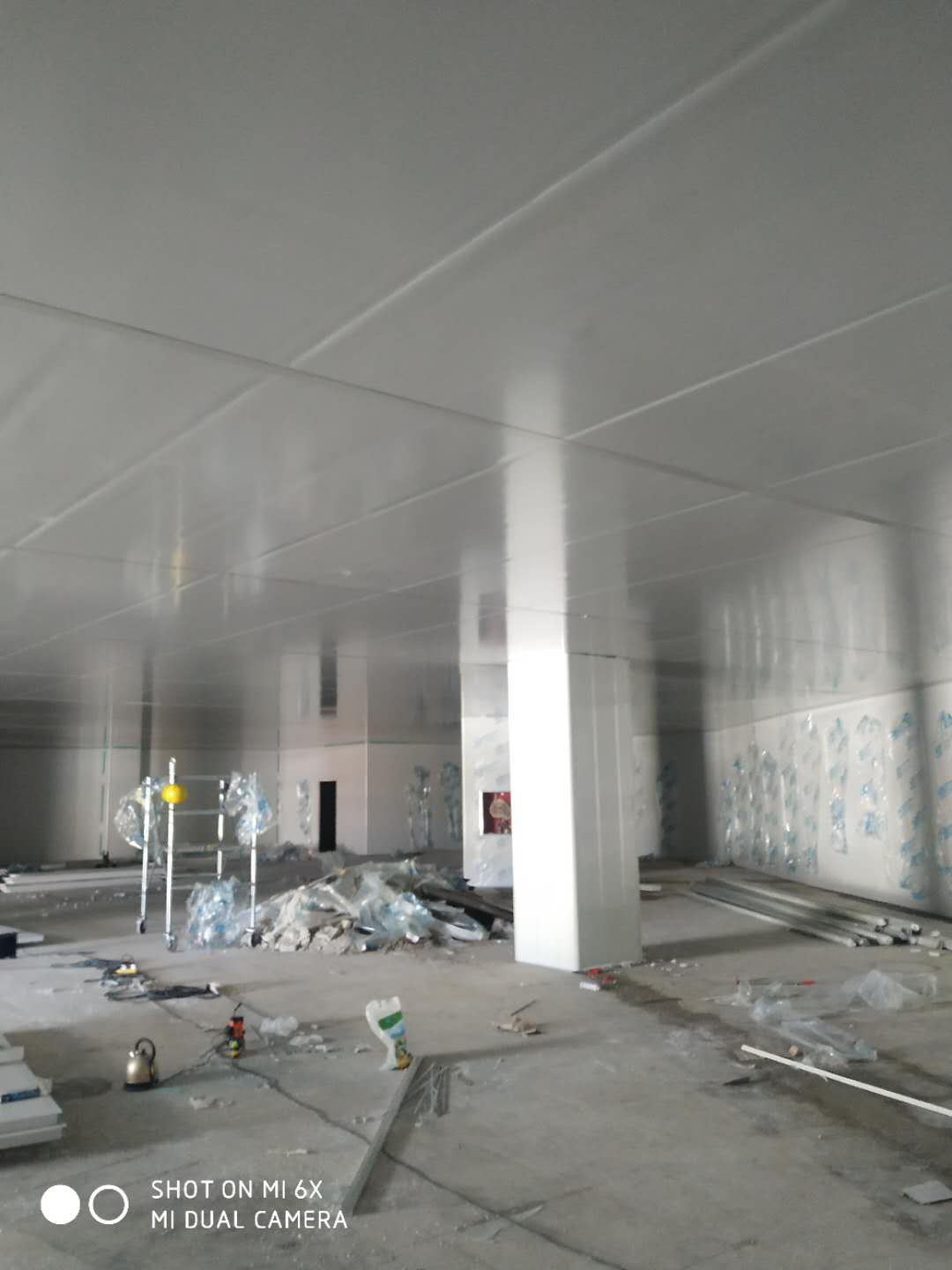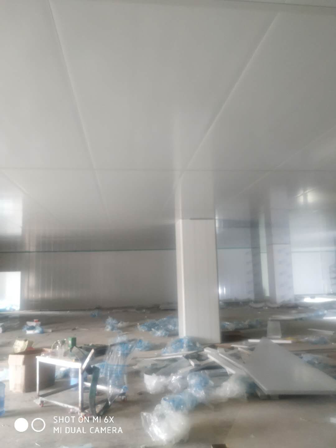 車間凈化彩鋼板施工完成,撕膜打膠
