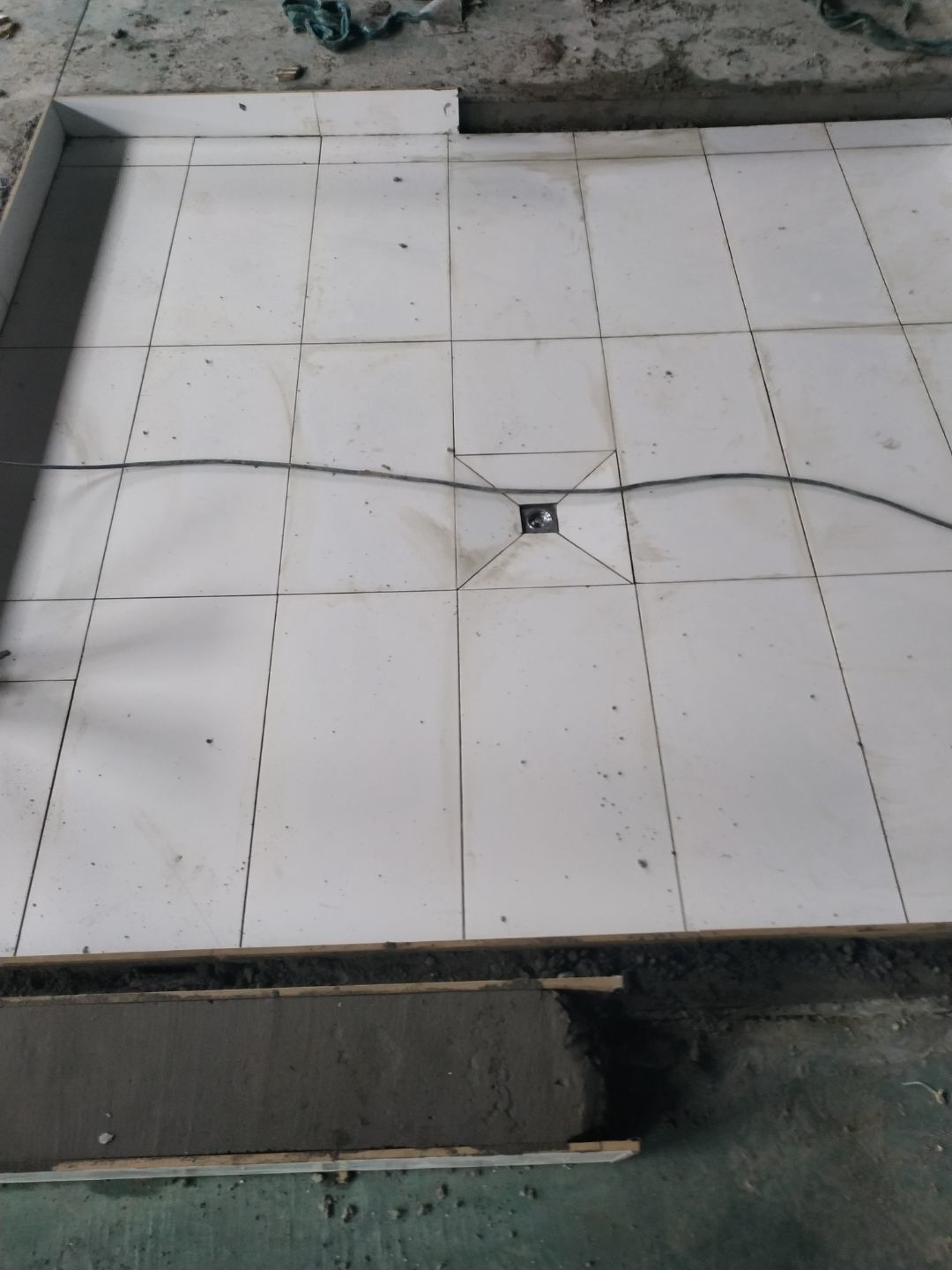 車間安裝現場臨時配電箱和臨時用水,車間排水溝放線,切縫完成40%。