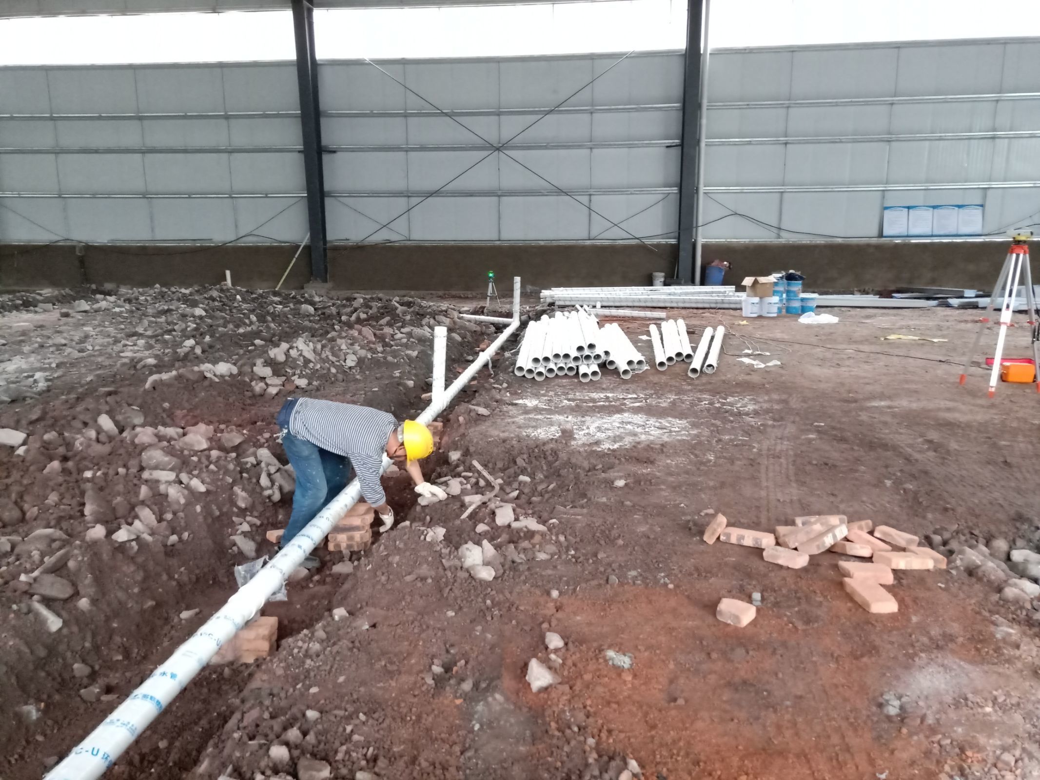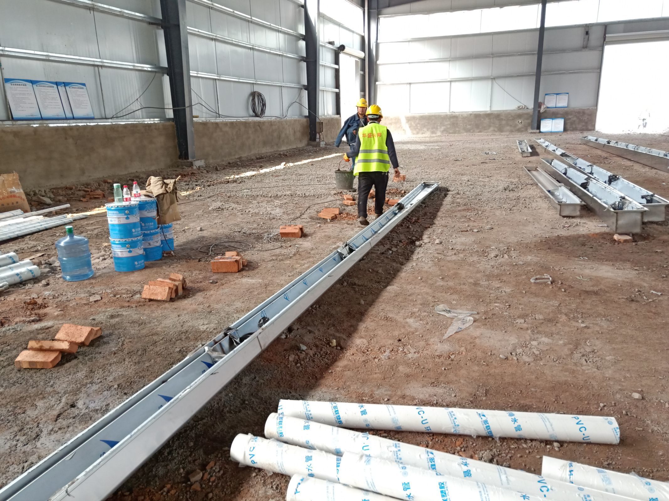 1、4號(hào)廠房主排水管安裝完成。 2、4號(hào)廠房排水溝焊接完成百分之六十。