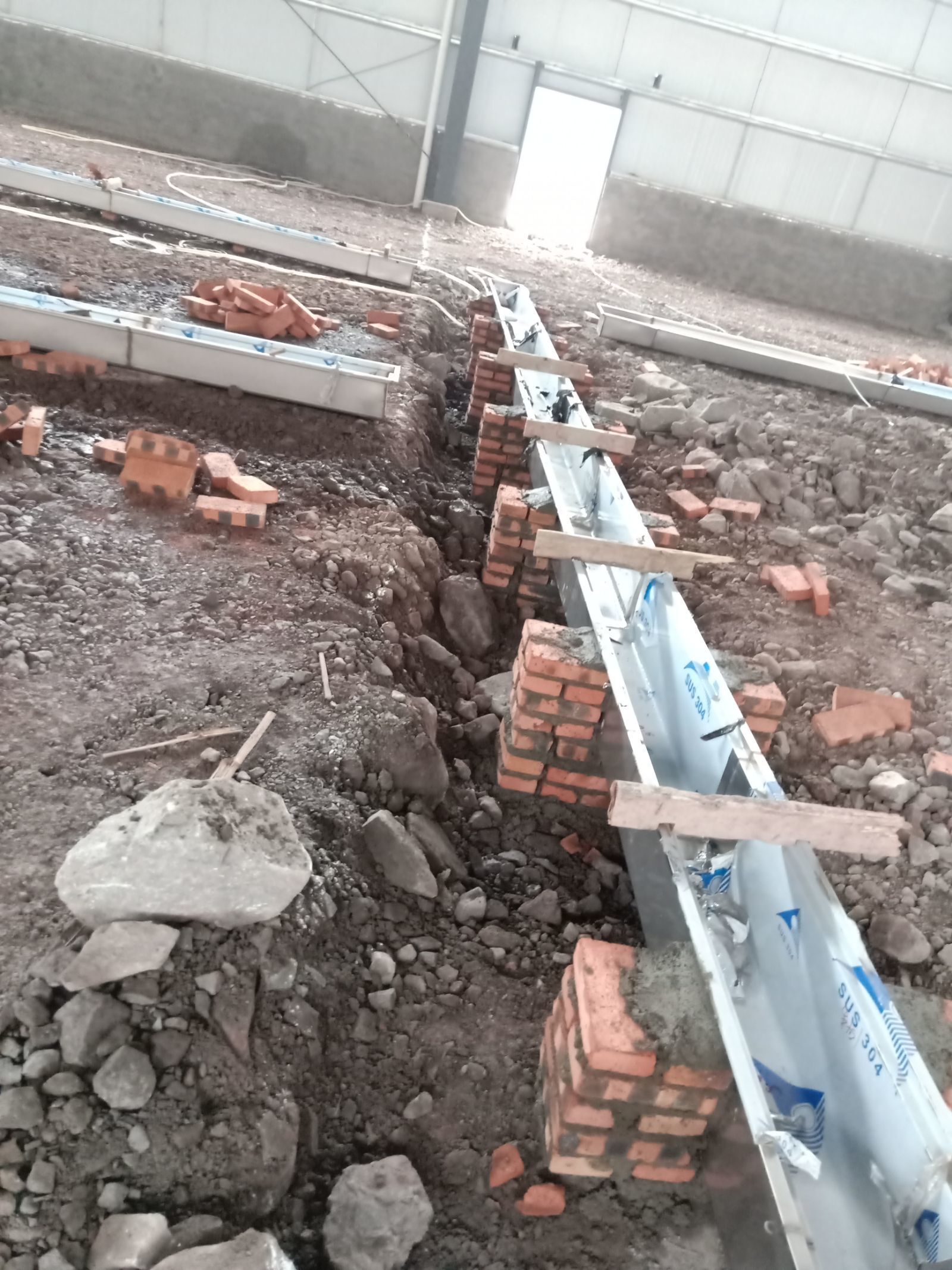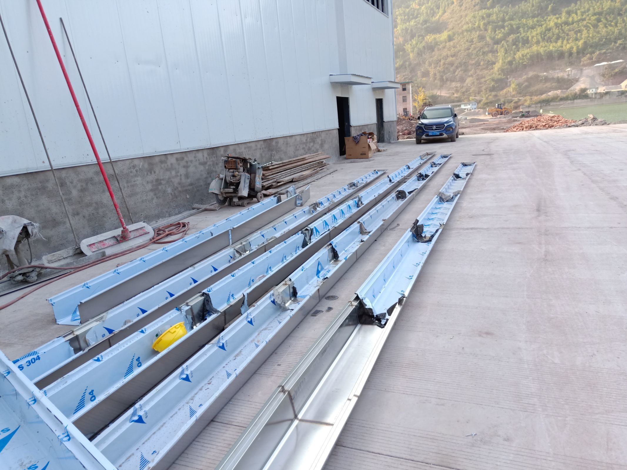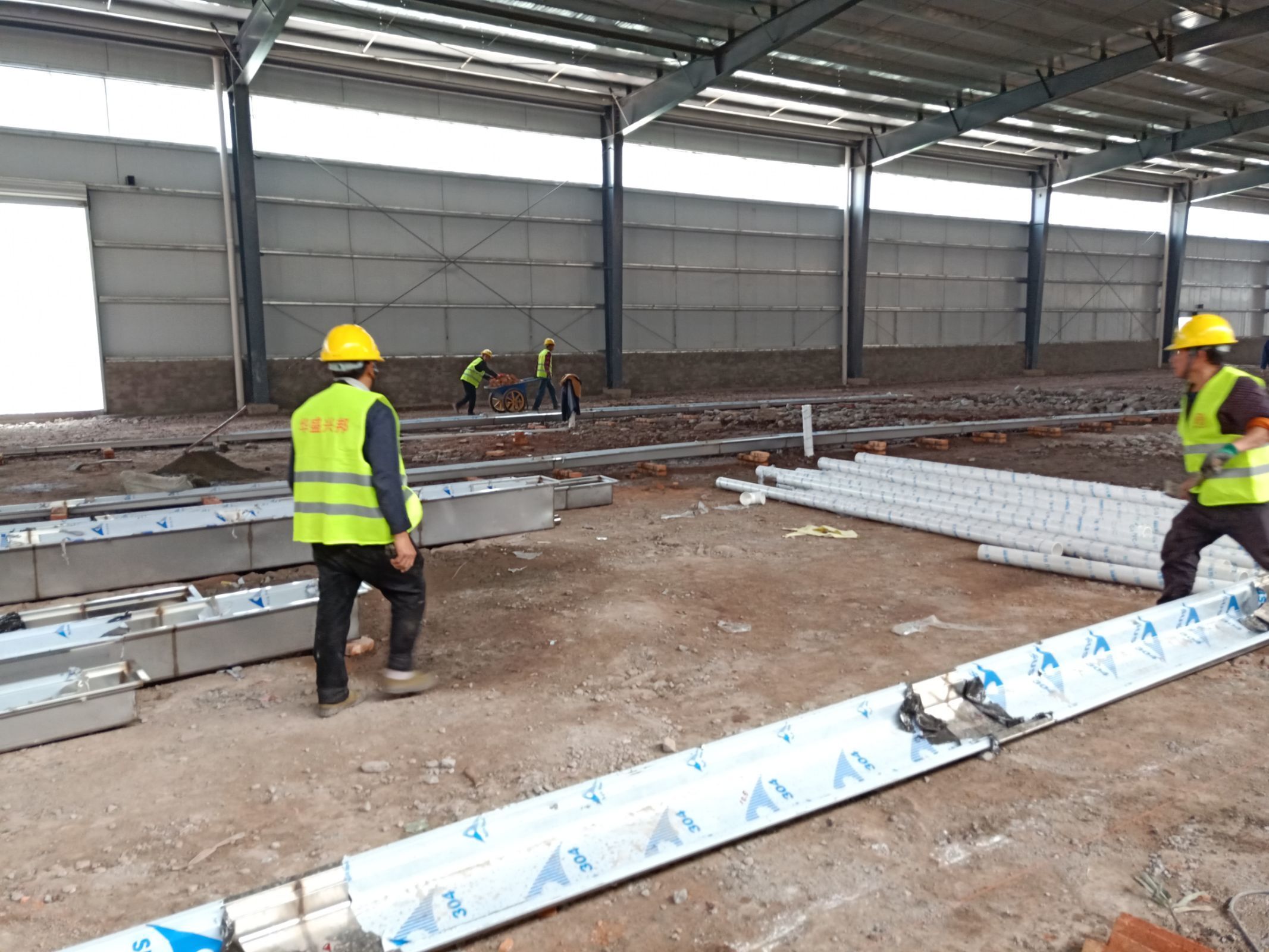 1.4號(hào)車間排水溝開(kāi)挖完成。 2.3號(hào)車間排水溝開(kāi)挖完成百分之二十 3.不銹鋼排水溝,排水管材料到場(chǎng)。