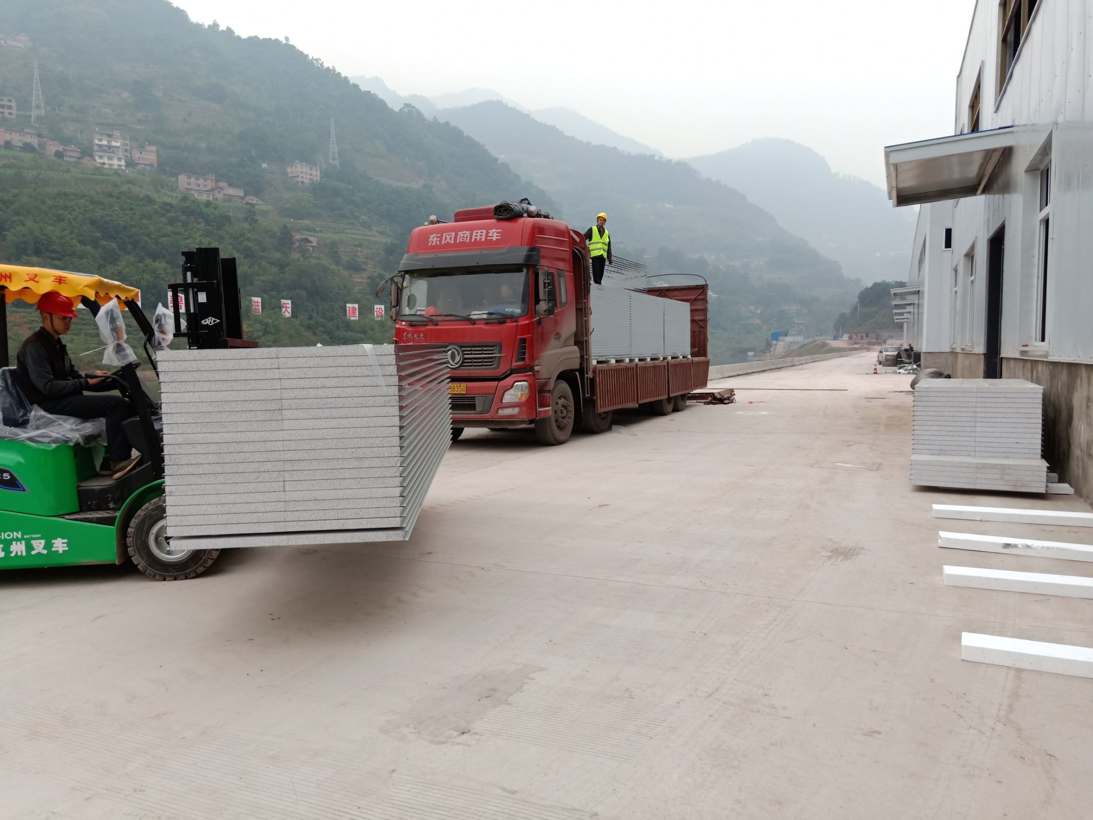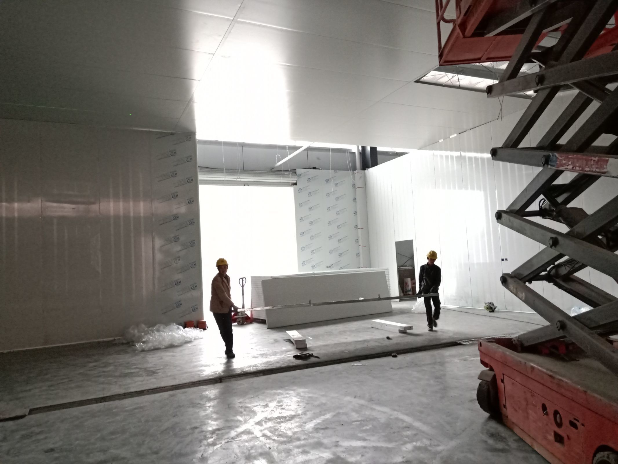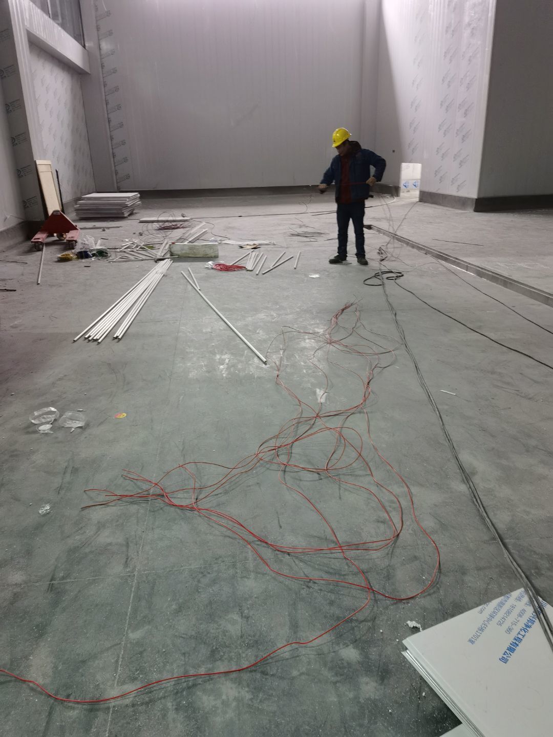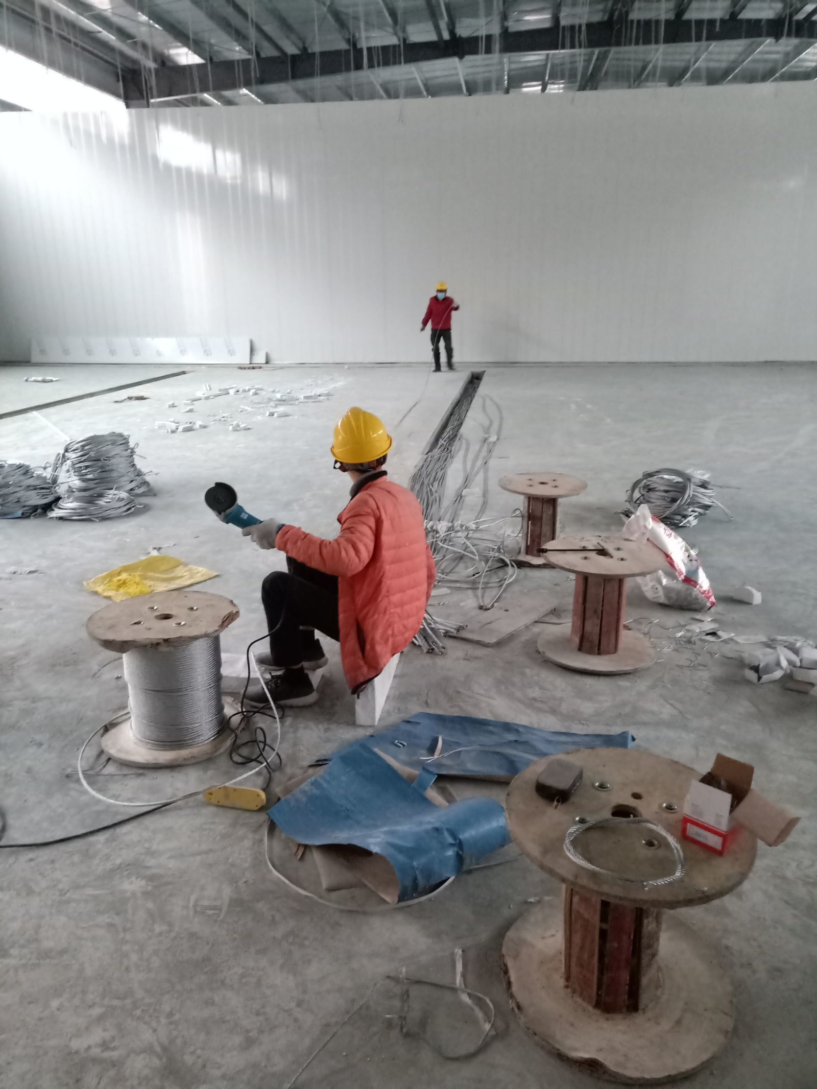 1.4號(hào)廠房地面固化完成百分之九十九。 2.4號(hào)廠房彩鋼隔墻板完成百分之八十。 3.4號(hào)廠房吊頂鋼繩完成百分之九十。 4.3號(hào)廠房擋水墻完成,地面固化開(kāi)始。 5.實(shí)驗(yàn)室pvc地板到場(chǎng)。
