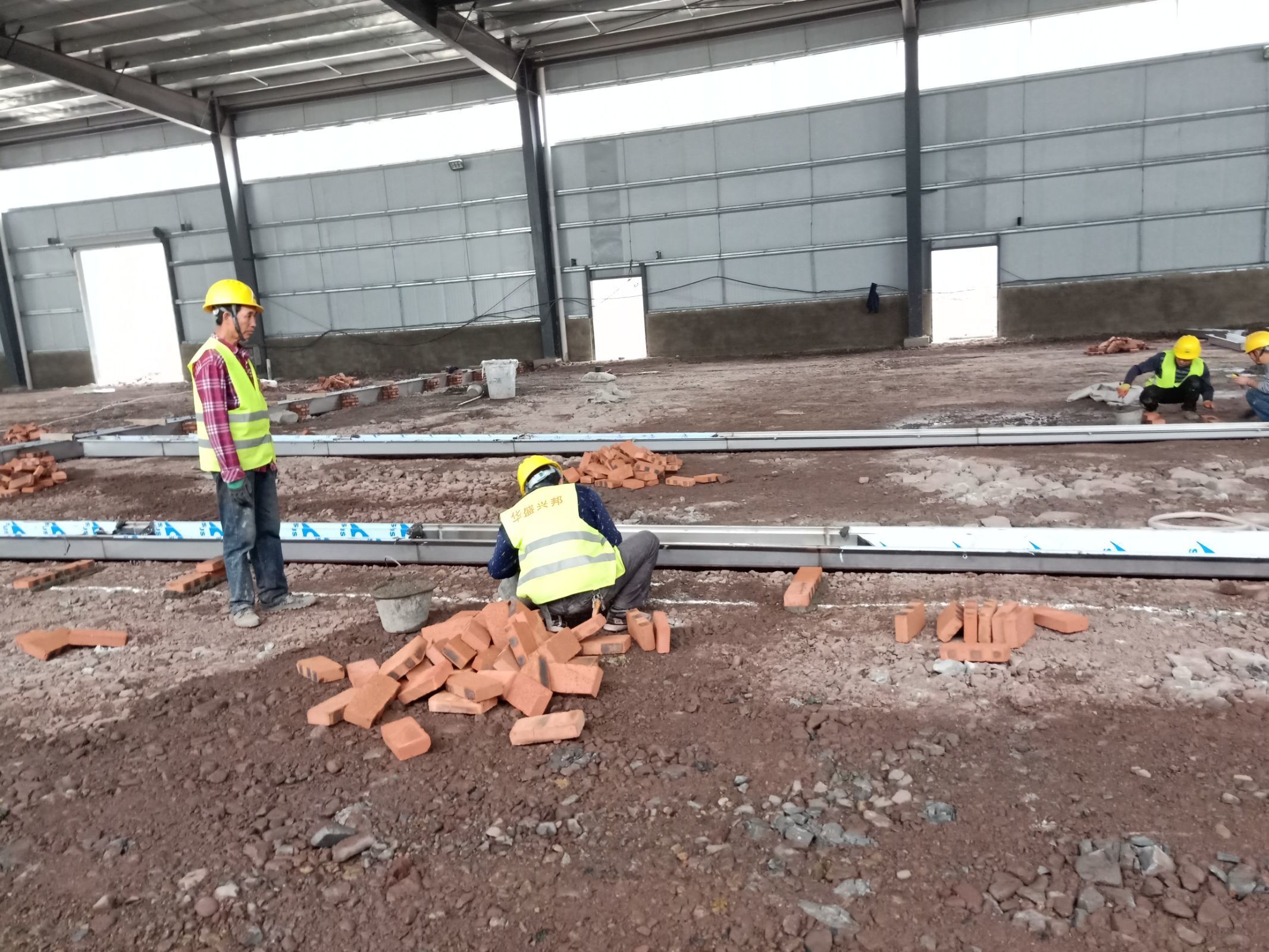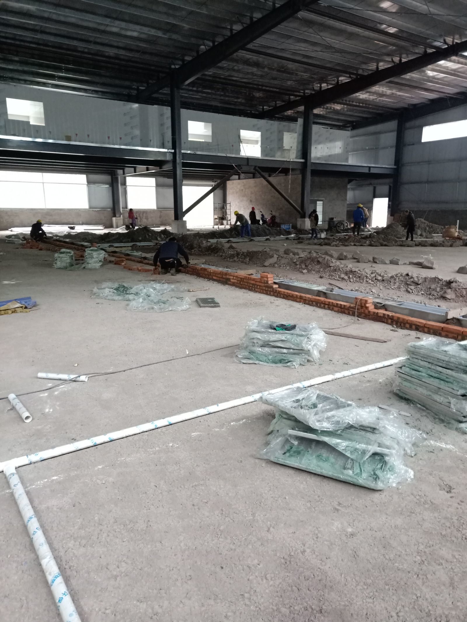 1. 4號(hào)廠房地坪養(yǎng)護(hù)。 2. 4號(hào)廠房不銹鋼水溝邊清理。 3. 4號(hào)廠房地坪切縫完成。 4. 4號(hào)廠房隔墻地位放線。 5. 3號(hào)廠房水溝安裝回填完成。 6. 3號(hào)廠房擋水墻砌筑完成百分之五十。 7. 3號(hào)廠房場(chǎng)地清理完成,準(zhǔn)備地坪混凝土澆筑。 8. 3號(hào)廠房混凝土澆筑區(qū)域標(biāo)高定位完成。