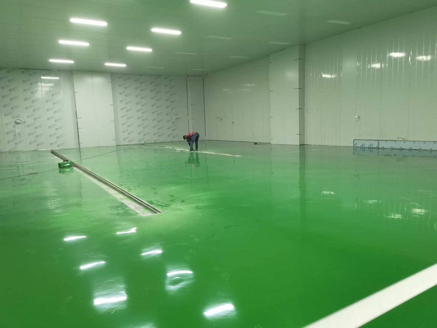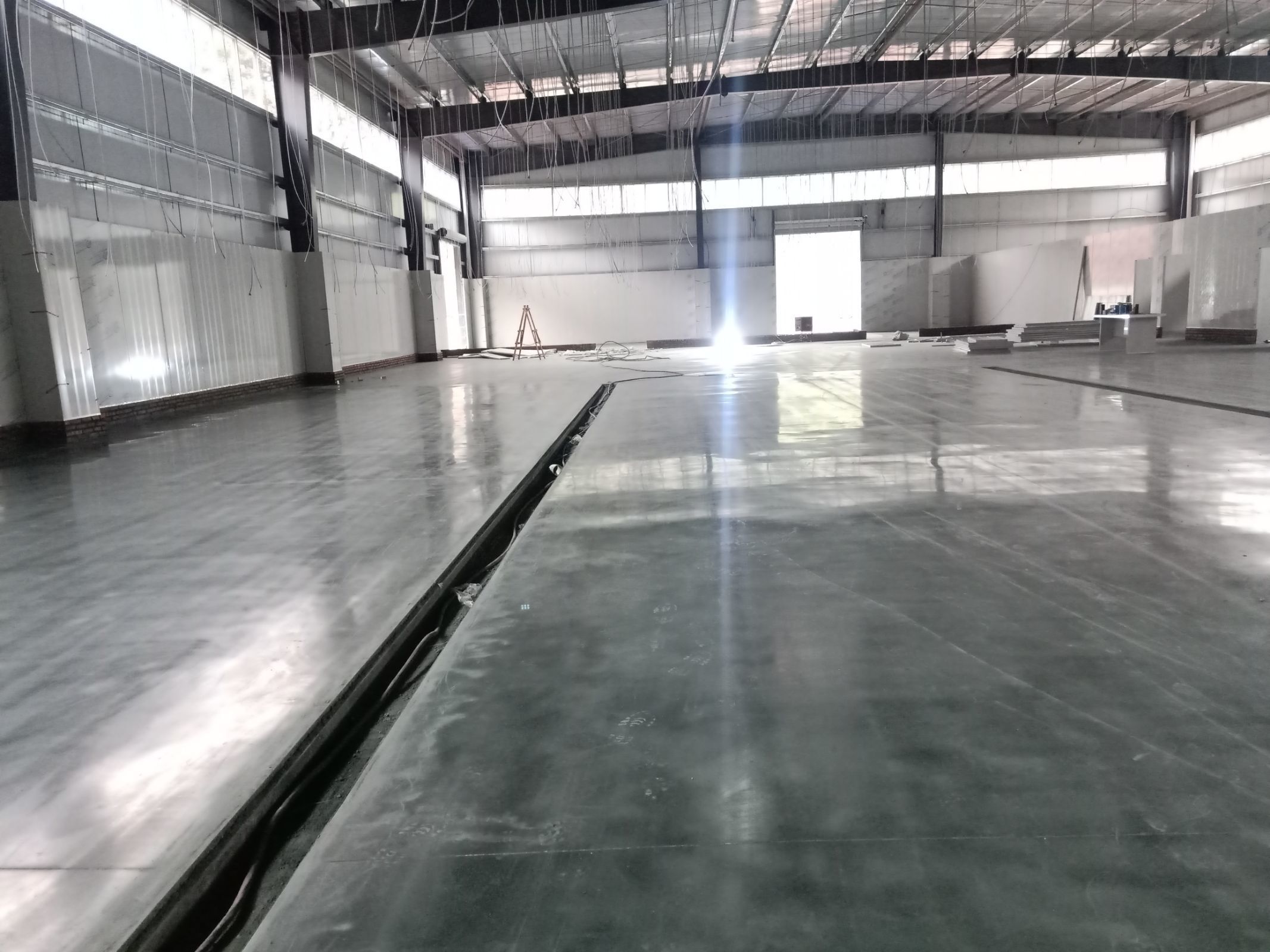 4號(hào)廠房聚氨酯地坪施工完成;燈具安裝