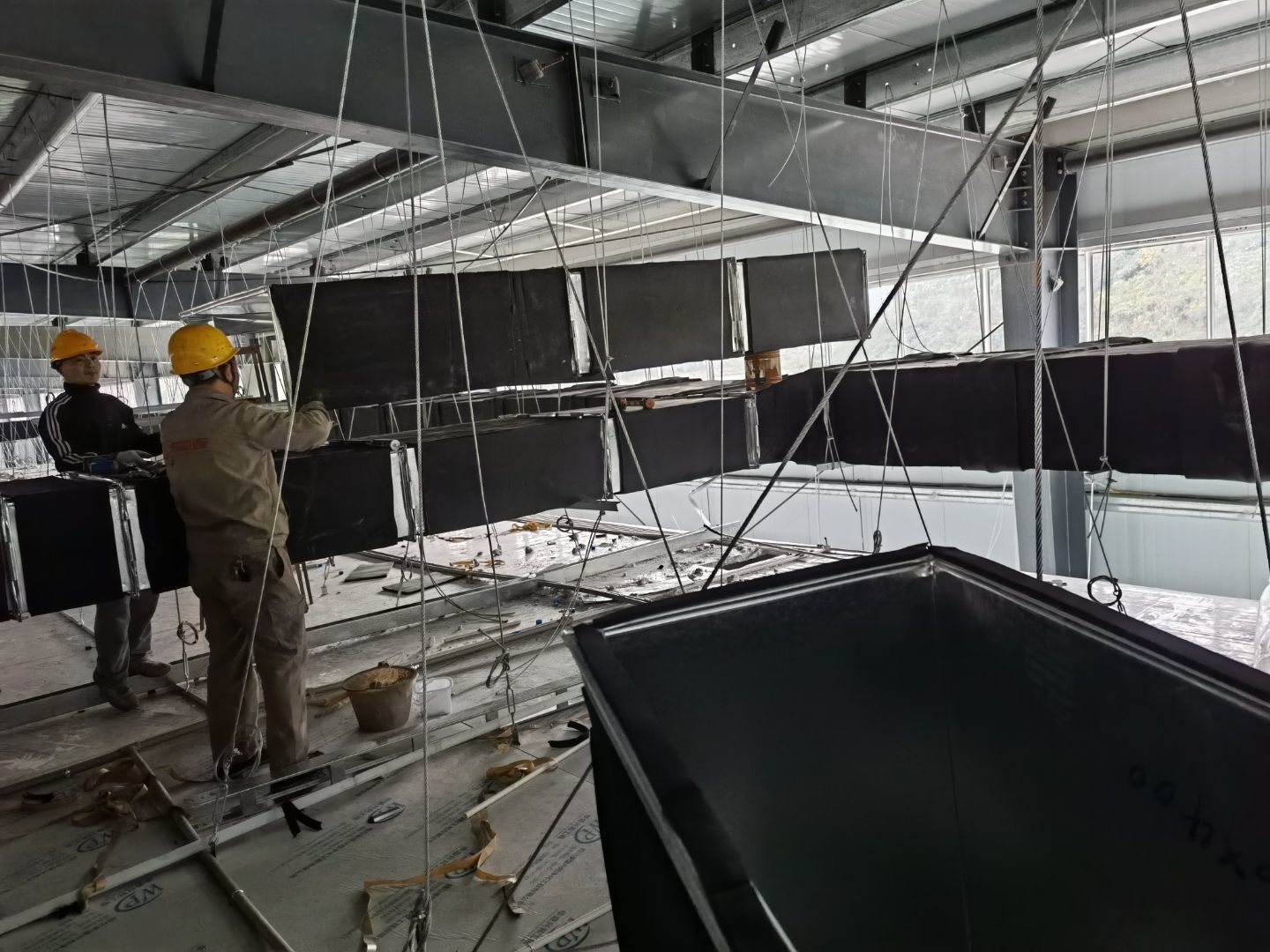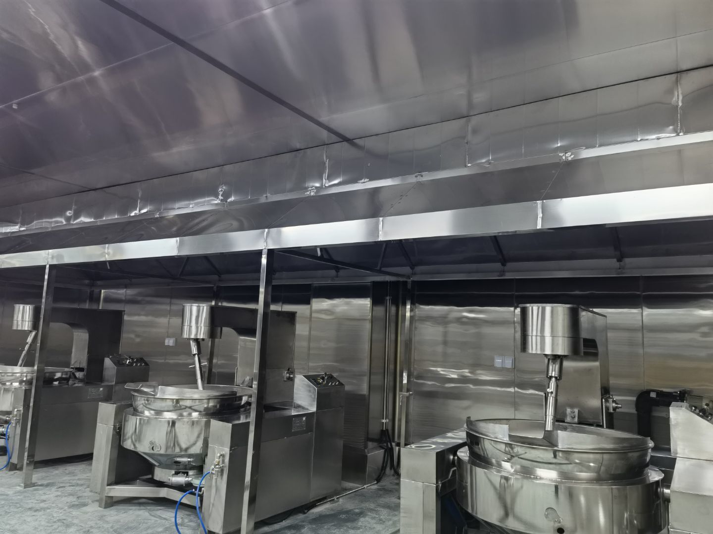4 號(hào)廠房水電安裝完成;不銹鋼煙罩安裝完成