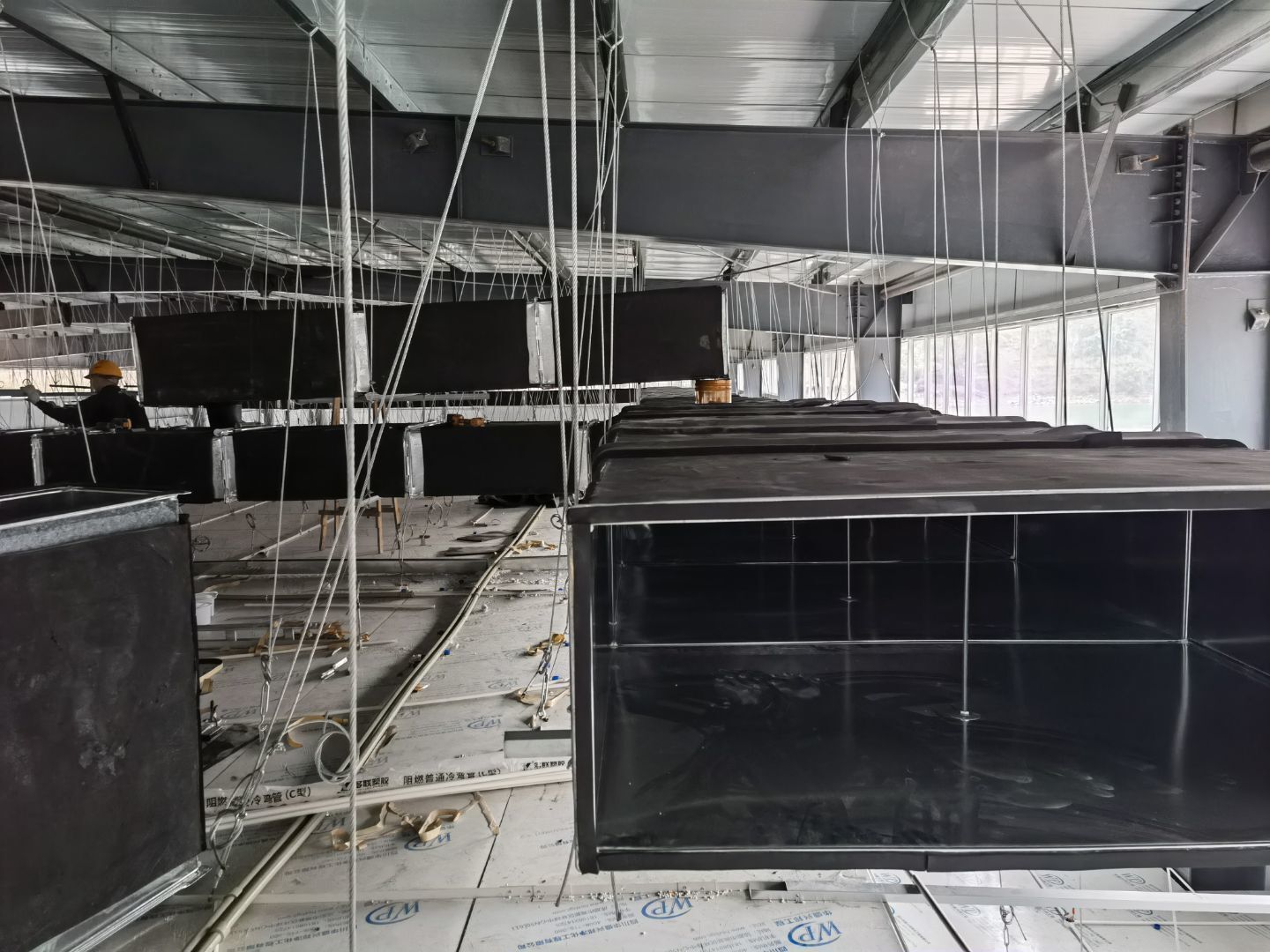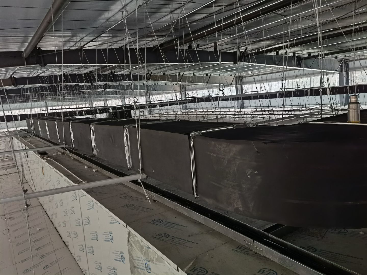 4號(hào)廠房通風(fēng)管道安裝完成百分之50,4號(hào)廠房臭氧管道安裝完成百分之90