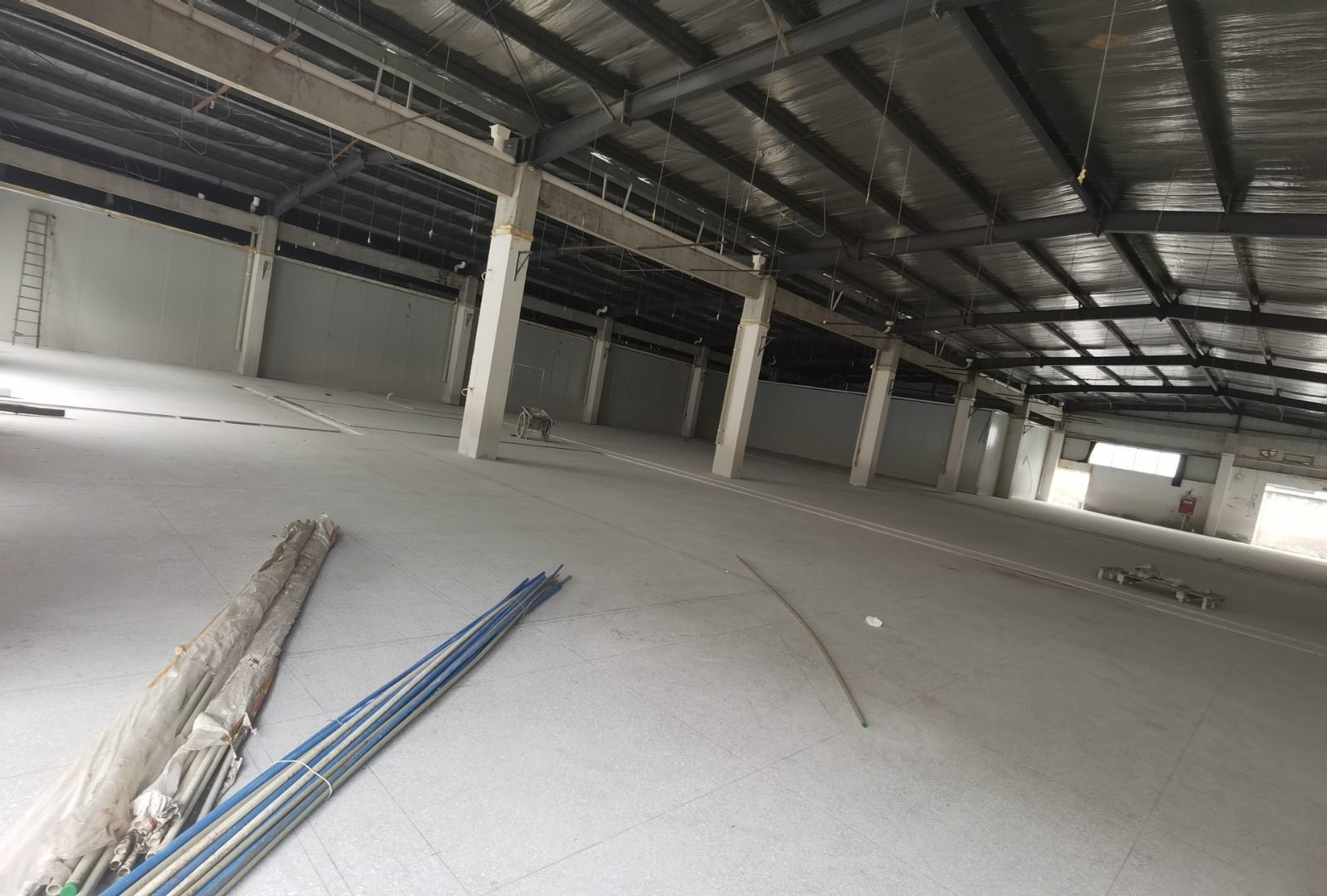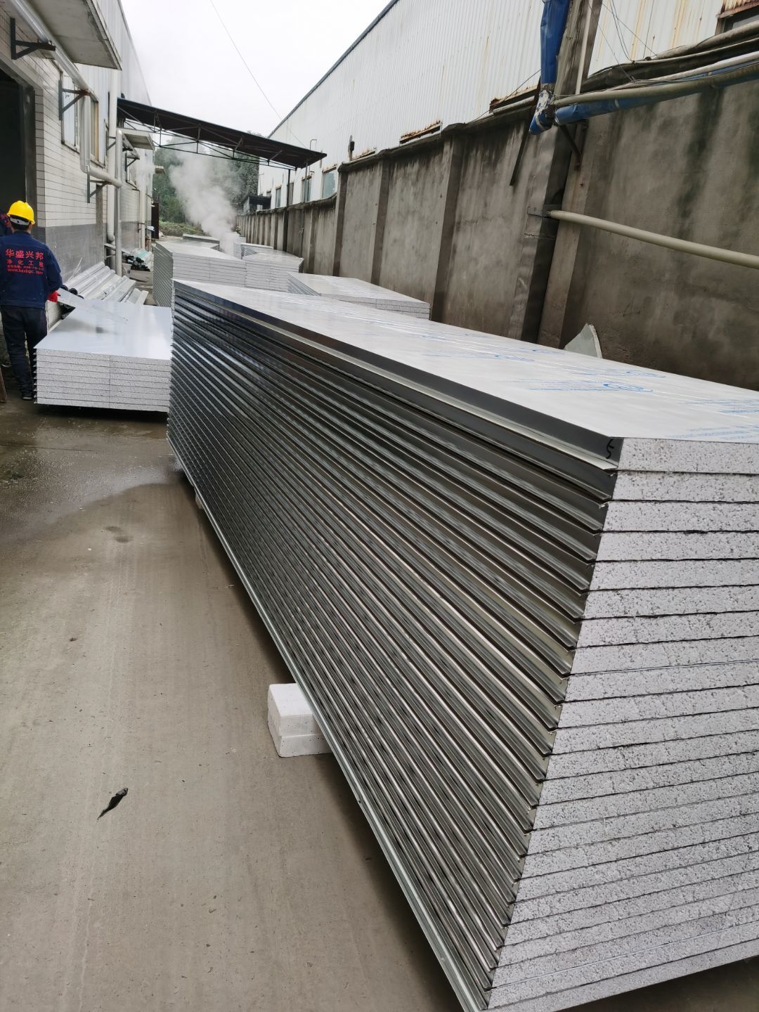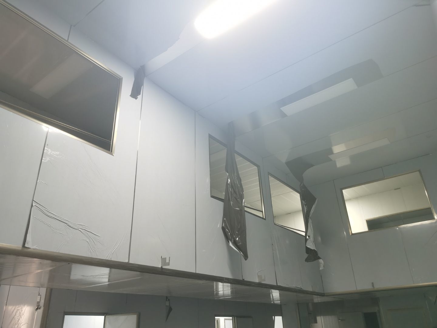1、鋼接構完成70%;2、凍庫完成100%;3、彩鋼板開始立墻板