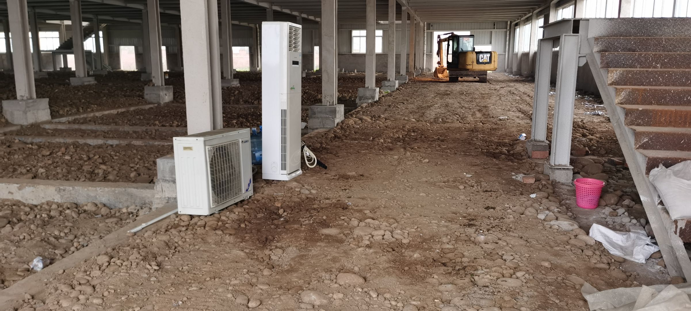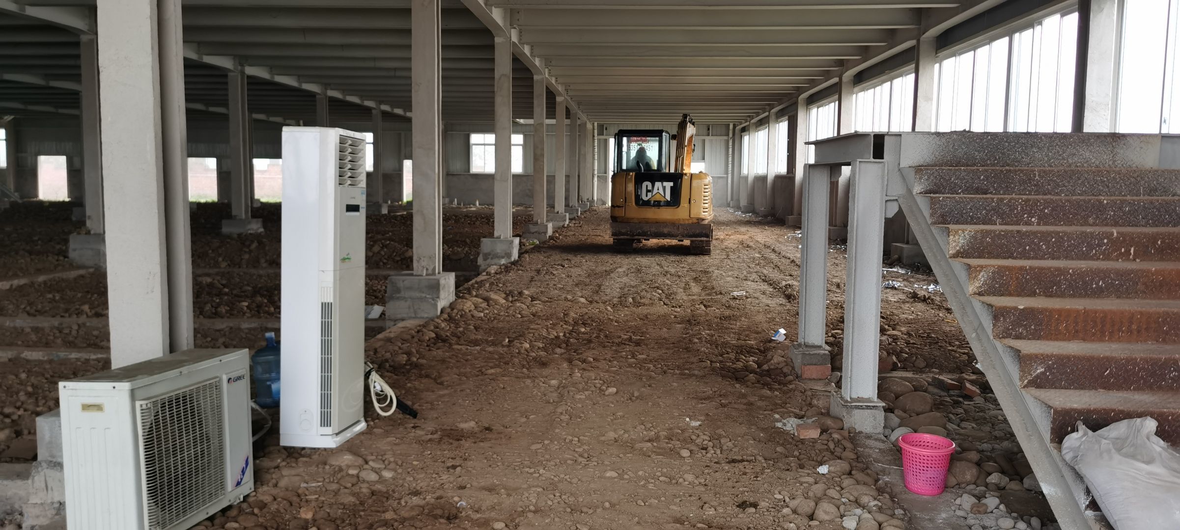 現場挖機壓地面,排水溝開挖