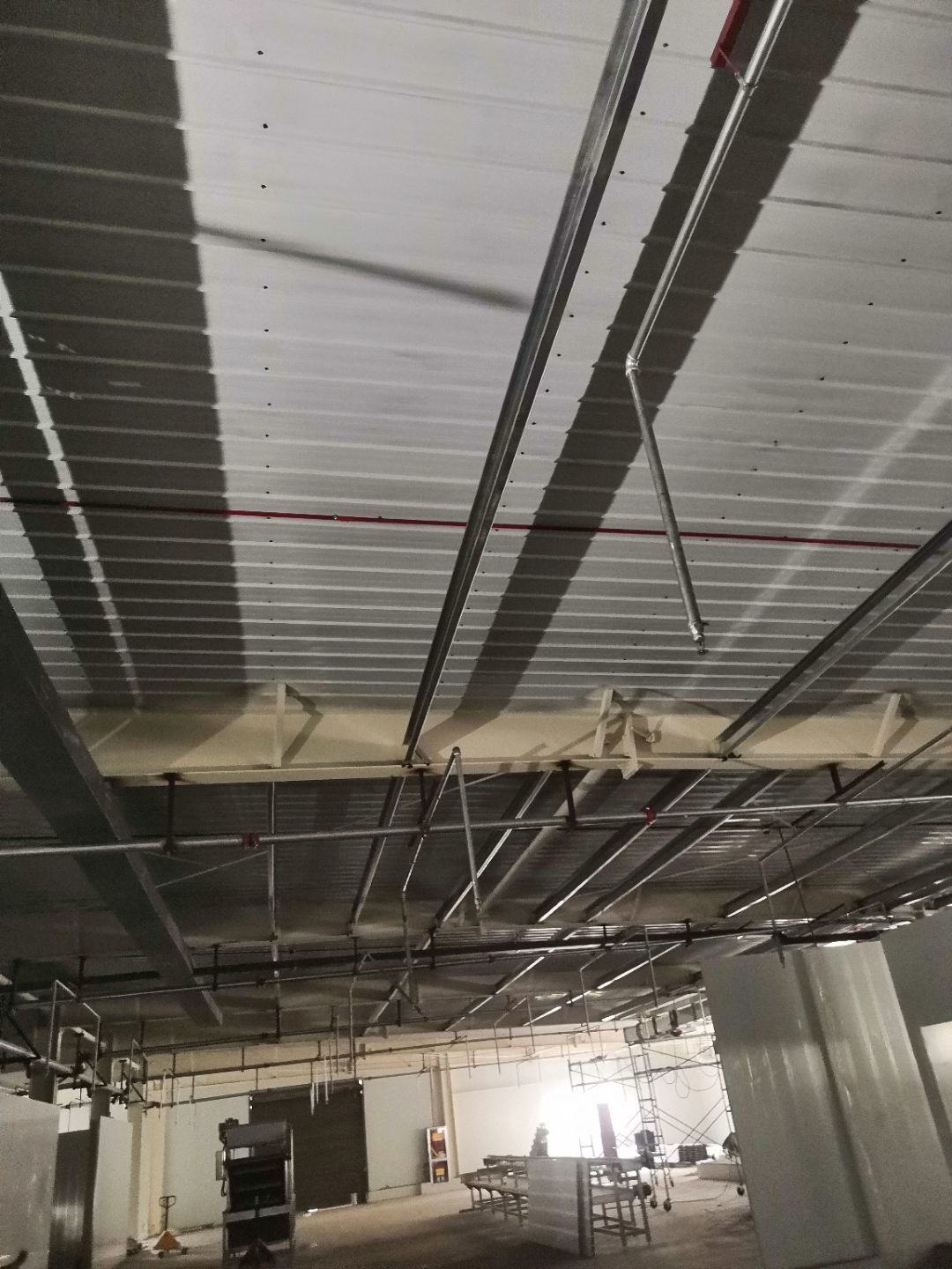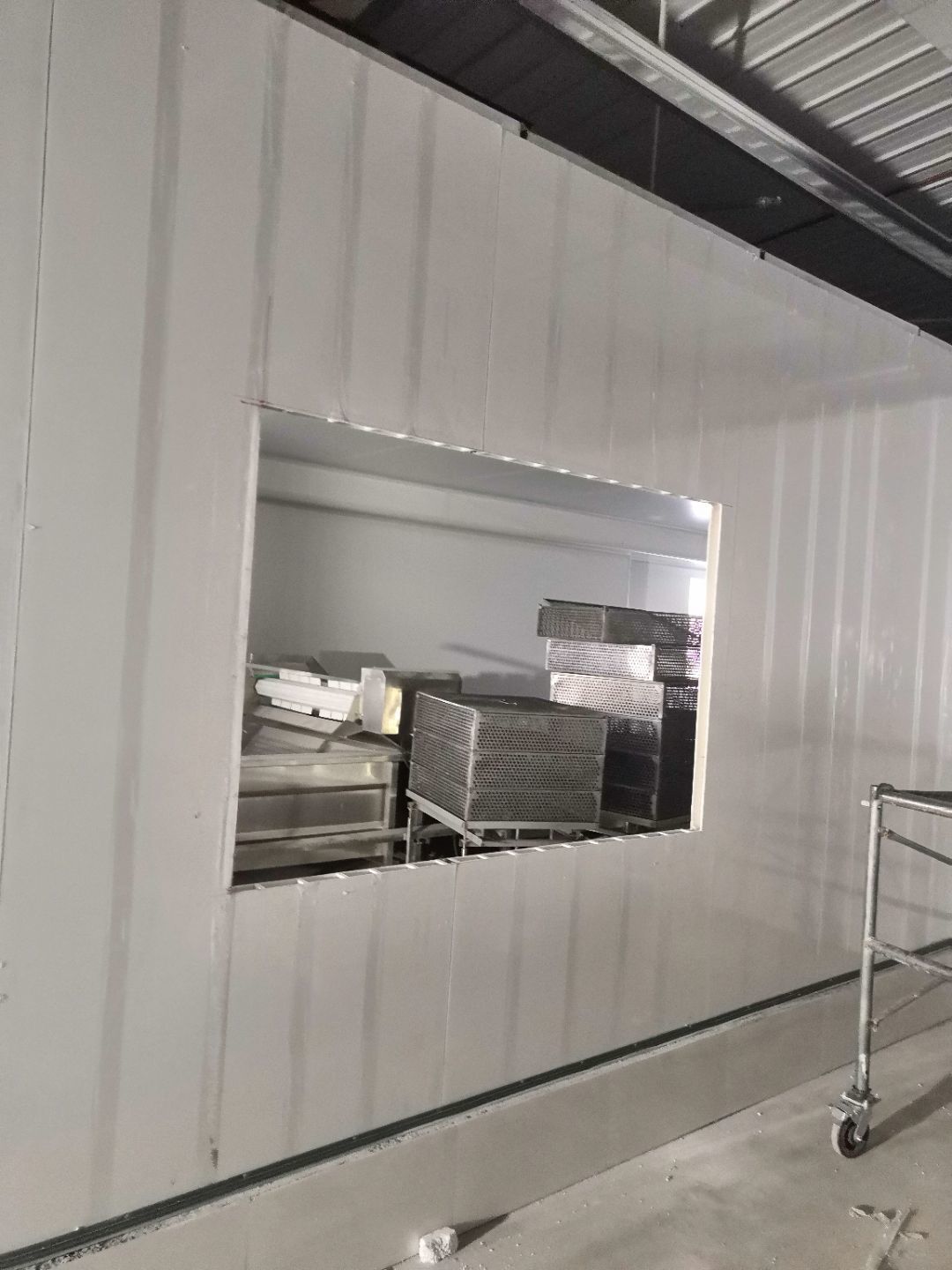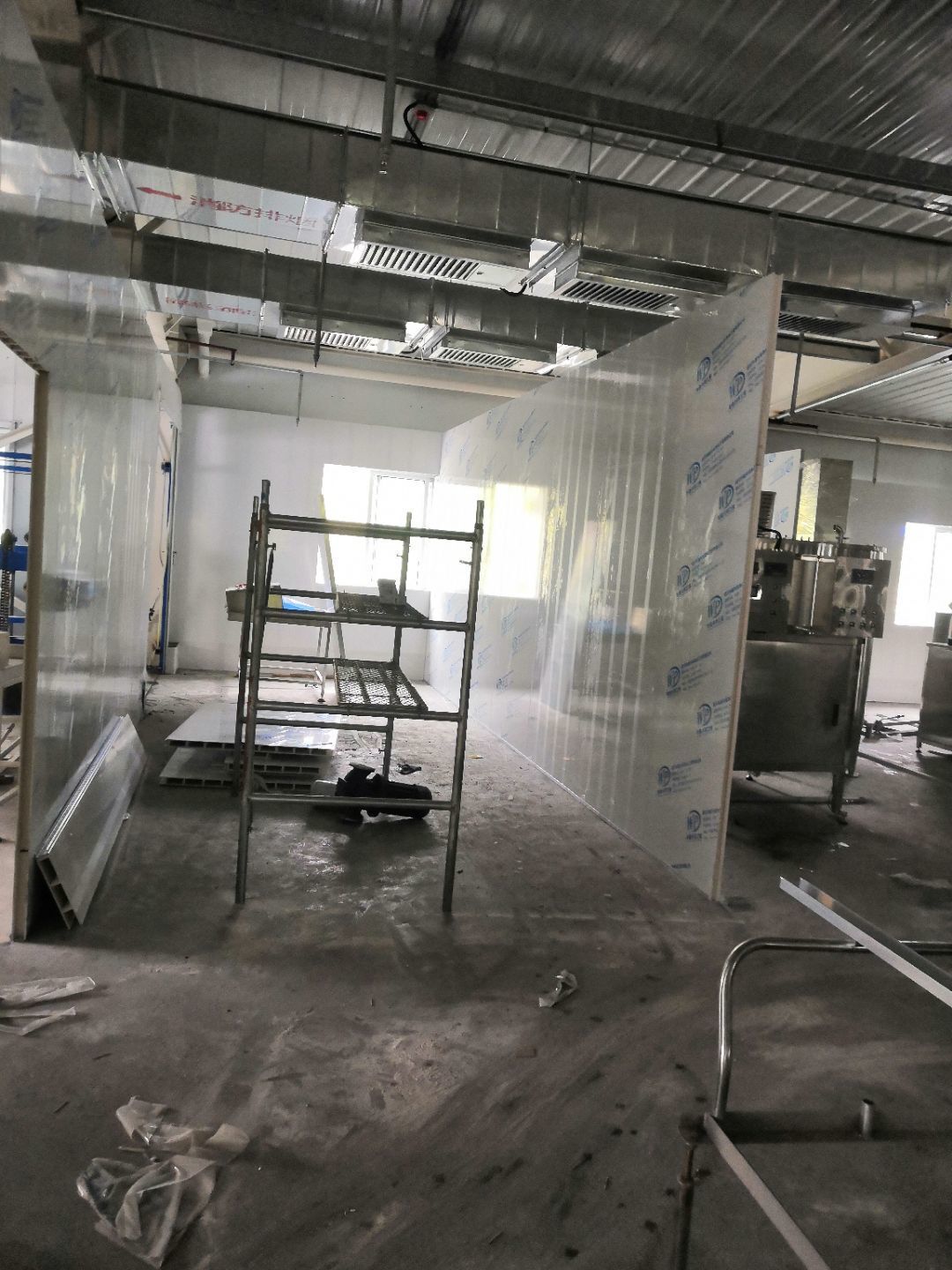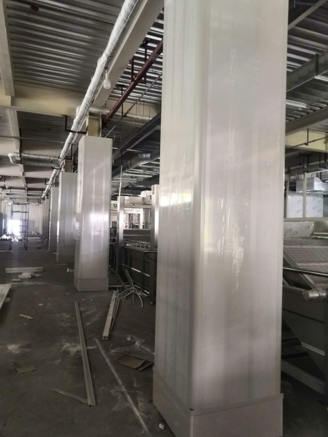 1、內(nèi)包間,殺菌間,更衣間,煉油間打膠條,(完成二樓打膠條20%); 2、內(nèi)包間拍圓弧(完成二樓圓弧5%) ;3、殺菌間包氣管子。