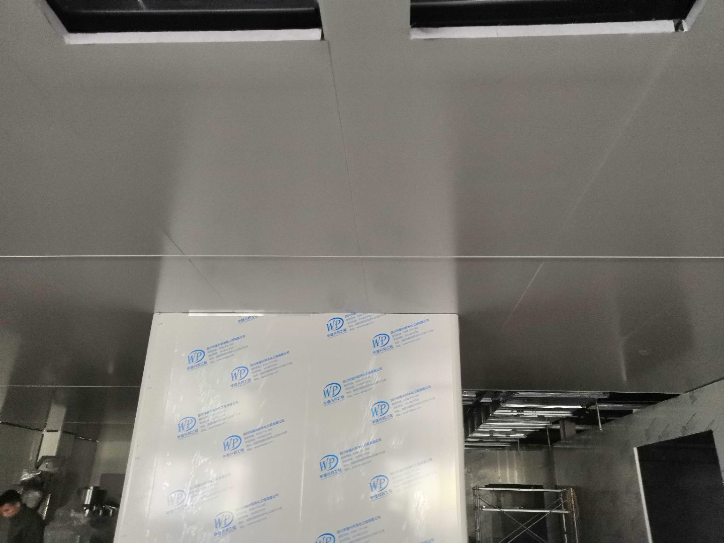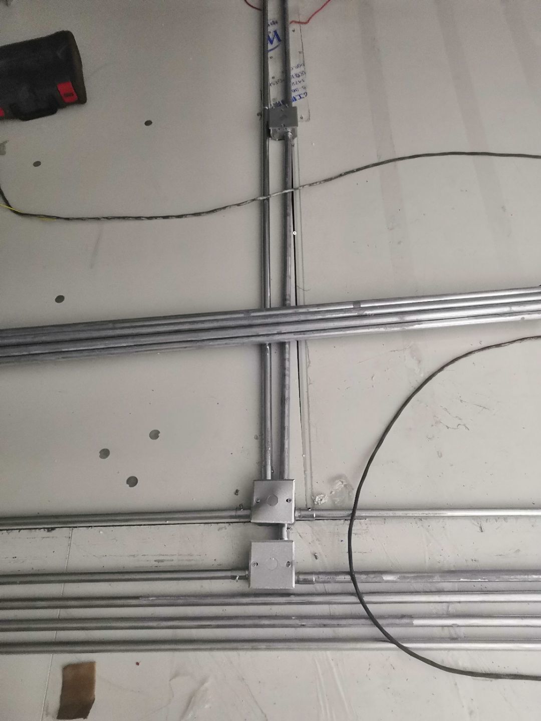 1.一樓樓梯間立墻板完成100%; 2一樓通道排燈線,二樓參觀通到排線;3. 電梯立墻板,一樓接臭氧管子90%。