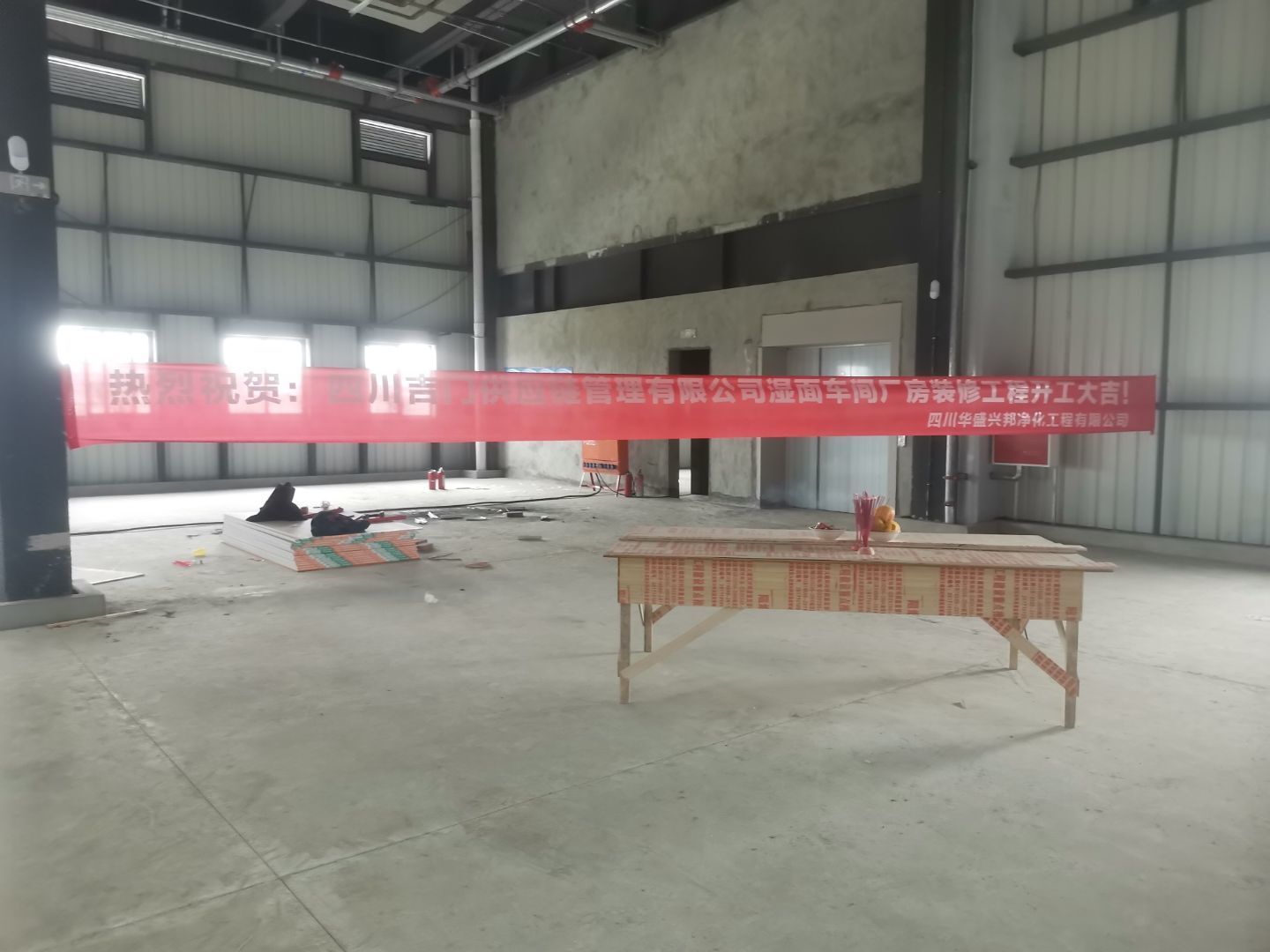 華盛興邦承接四川吉門供應(yīng)鏈管理有限公司濕面車間裝修,裝修面積2500平方。建廠找華盛興邦,咨詢熱線:181-0821-4725 189-8085-3815