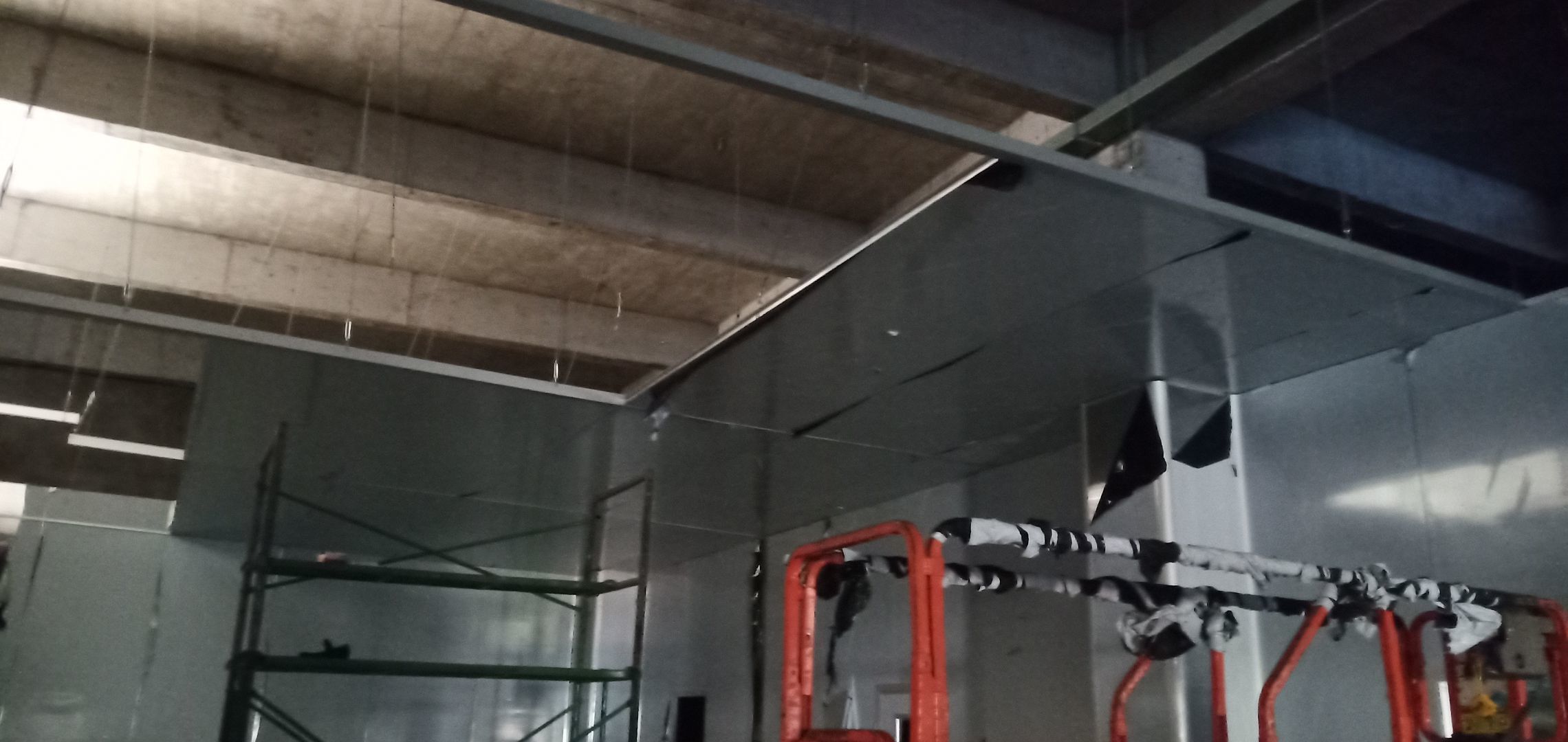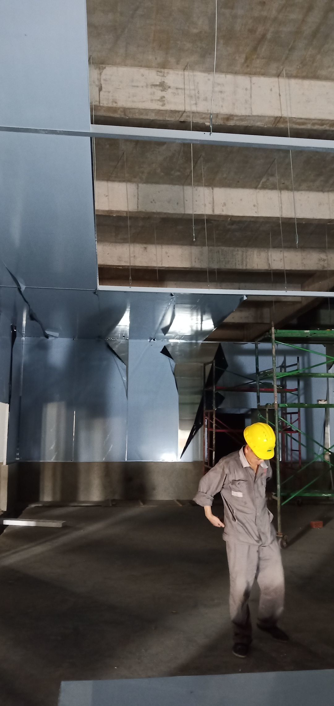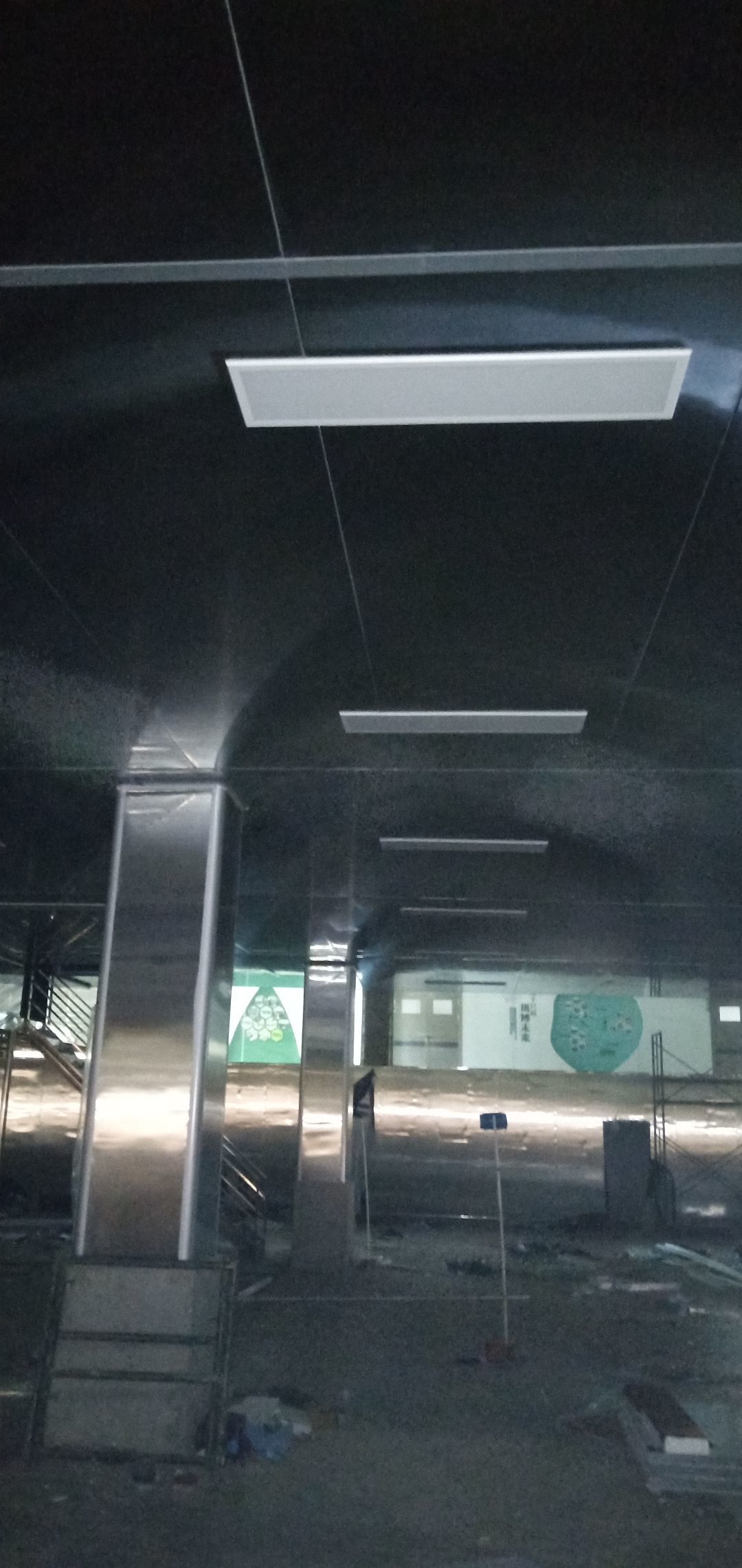 彩鋼板完成70%,風(fēng)管、空調(diào)安裝完成70%,水電完成60%