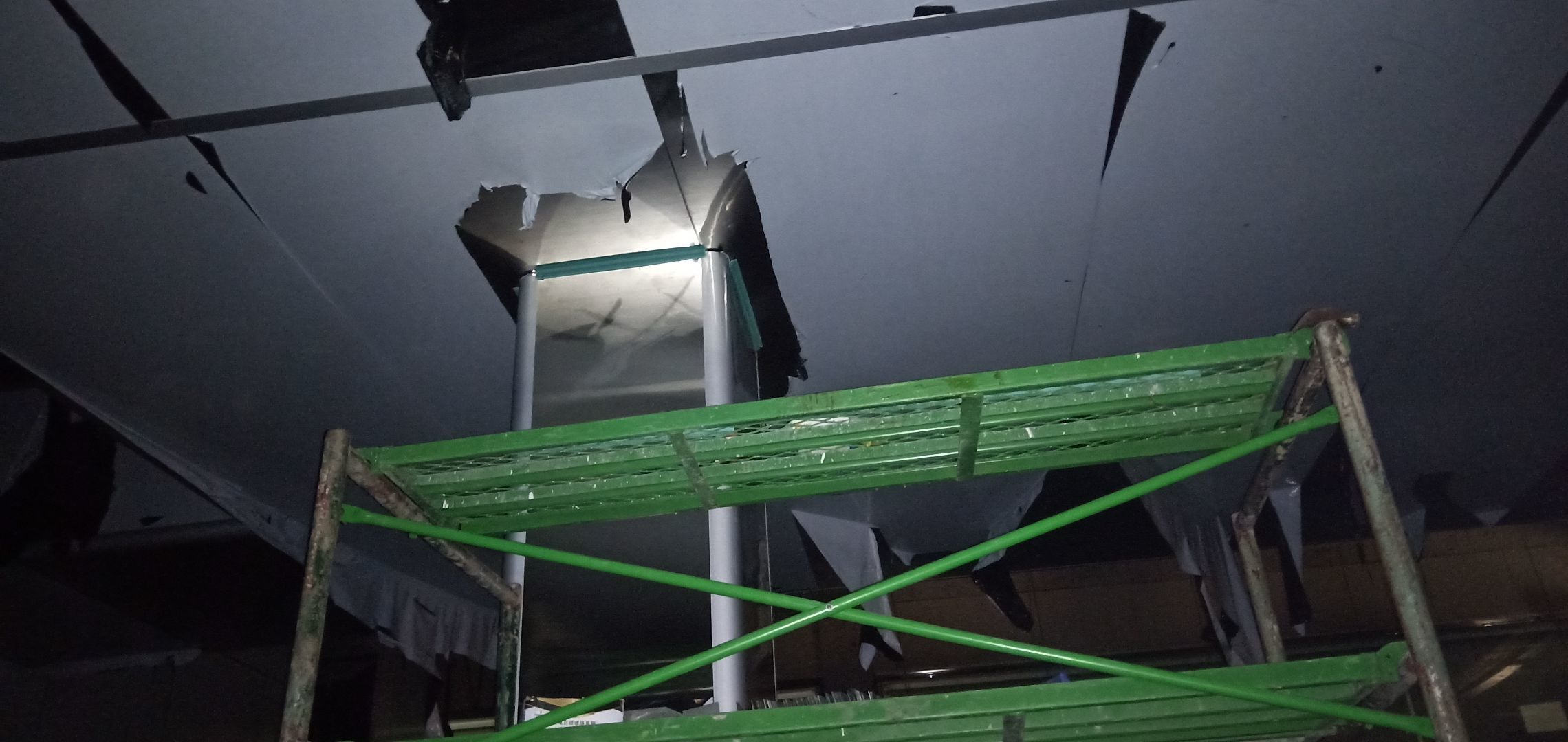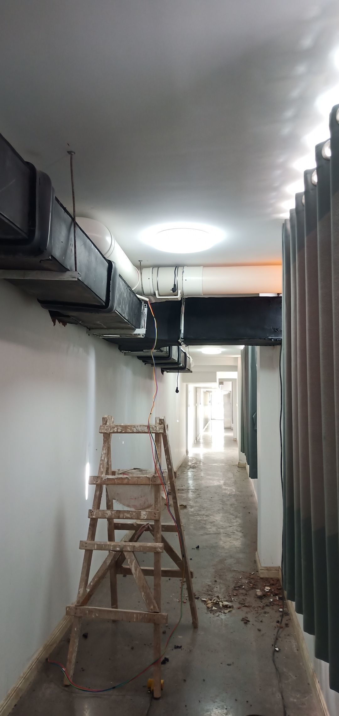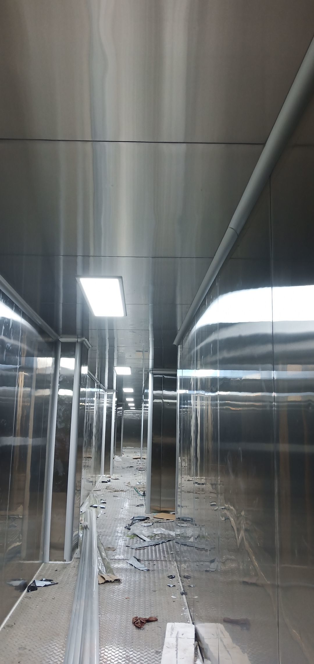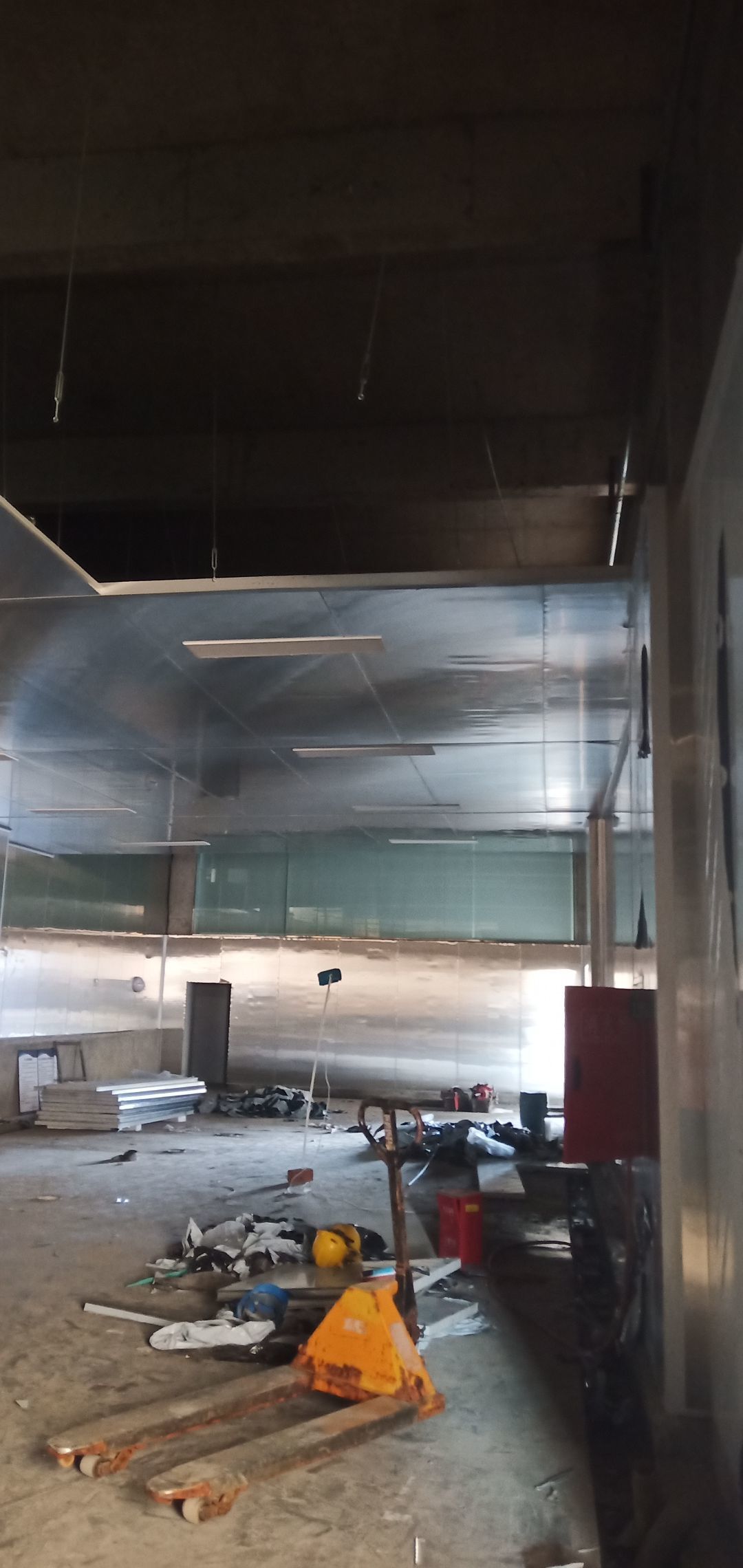 彩鋼板完成70%,風(fēng)管、空調(diào)安裝完成70%,水電完成60%