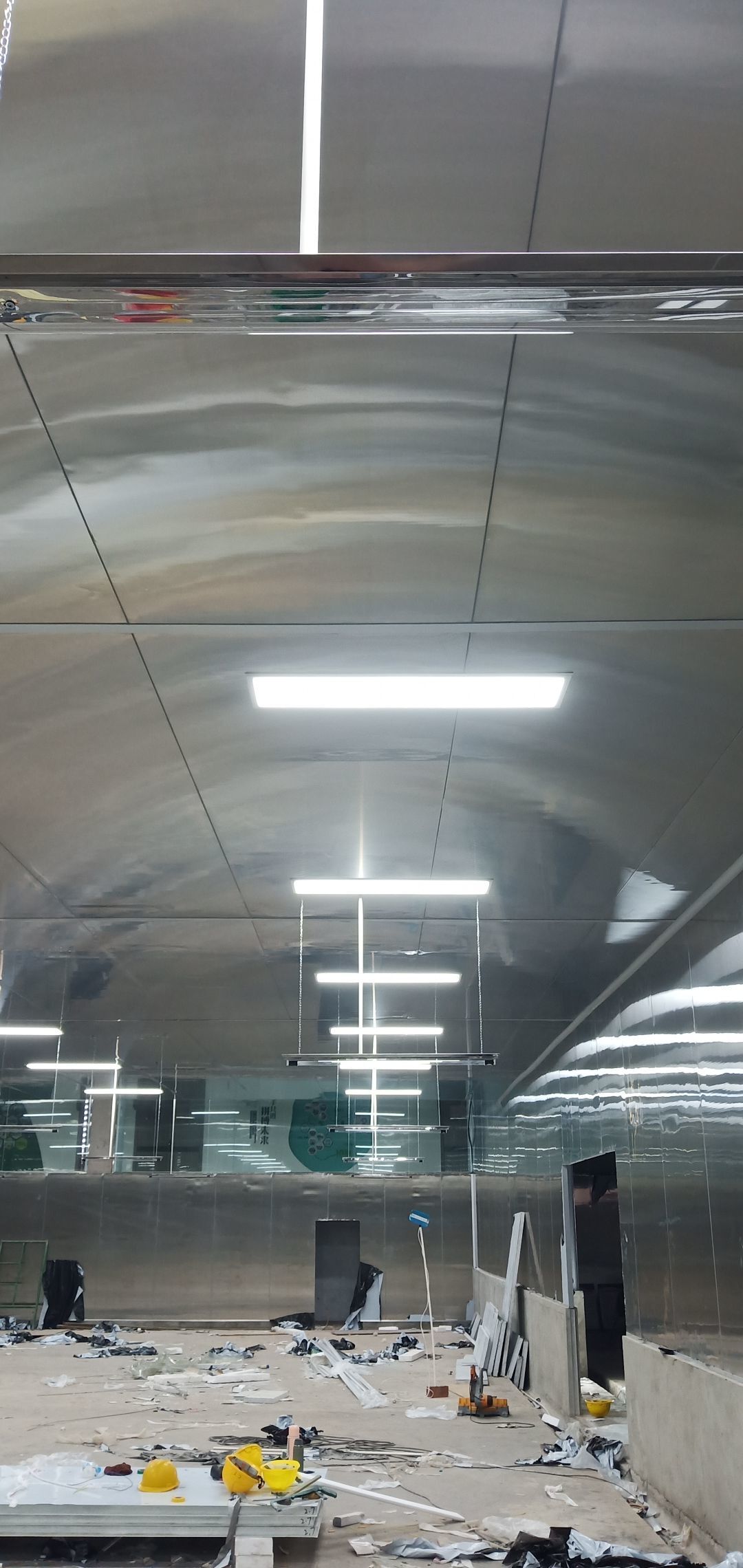 更衣室墻板完成100%,圓弧、膠完成100%,吊頂完成50%