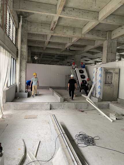 凍庫施工,風管安裝,墻體打膠條