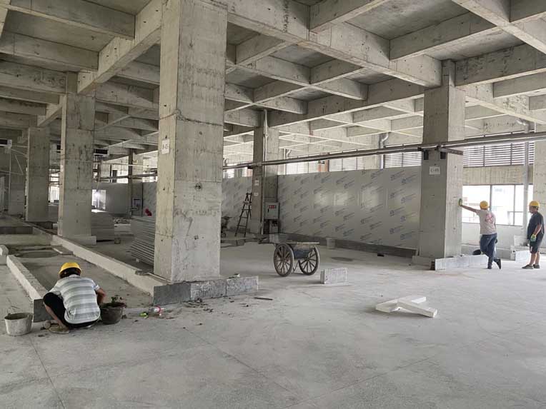 1、水磨石完成100%,2、擋水墻貼磚完成70%,剩余30%擋水墻貼磚200平米瓷磚粘貼; 3、彩鋼墻板完成20%,吊頂絲桿完成50%,頂板完成15%,材料到場50%;凍庫施工