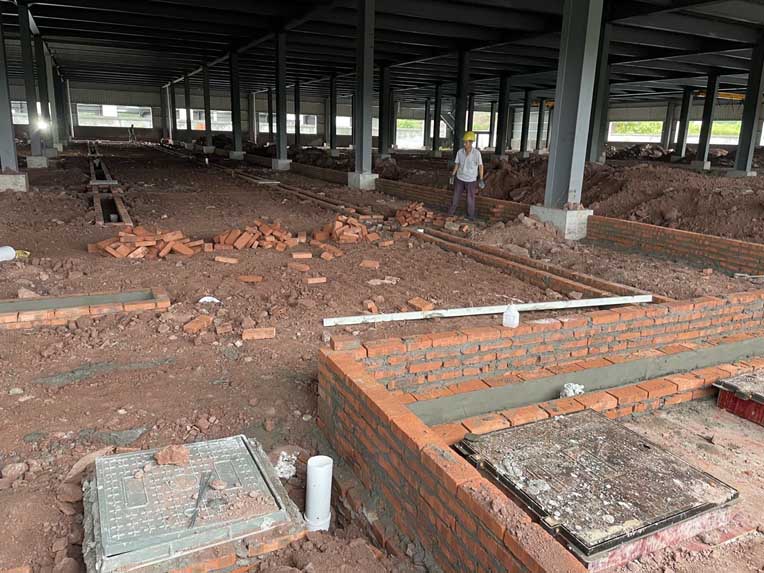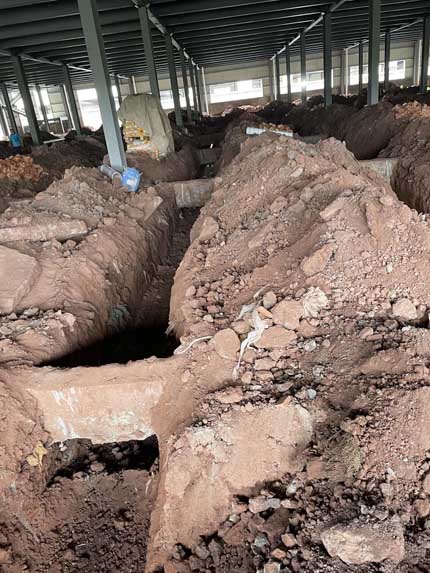排水溝開挖完工、洞庫開開挖完工,土建人員進場、材料進場。