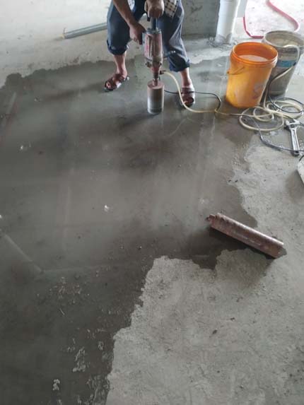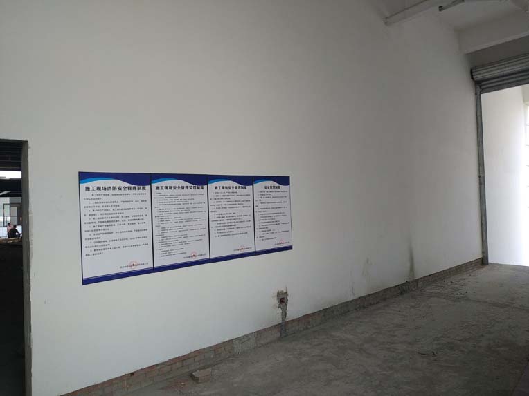 地漏開孔完成,施工現(xiàn)場:橫幅,配電箱,制度牌安裝