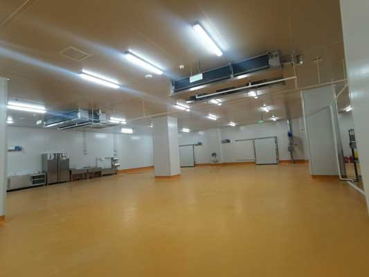 華盛興邦承接成都天府智慧大廚房科技有限責(zé)任公司園區(qū)廠房設(shè)計(jì)、工程施工項(xiàng)目,項(xiàng)目面積32000平方米,是一家大型中央廚房建設(shè),集凈菜加工、主食加工、倉儲保鮮、冷鏈物流產(chǎn)業(yè)鏈為一體的大型智能化廚房。