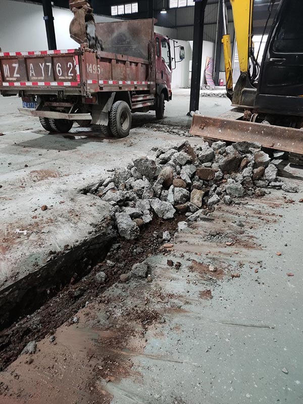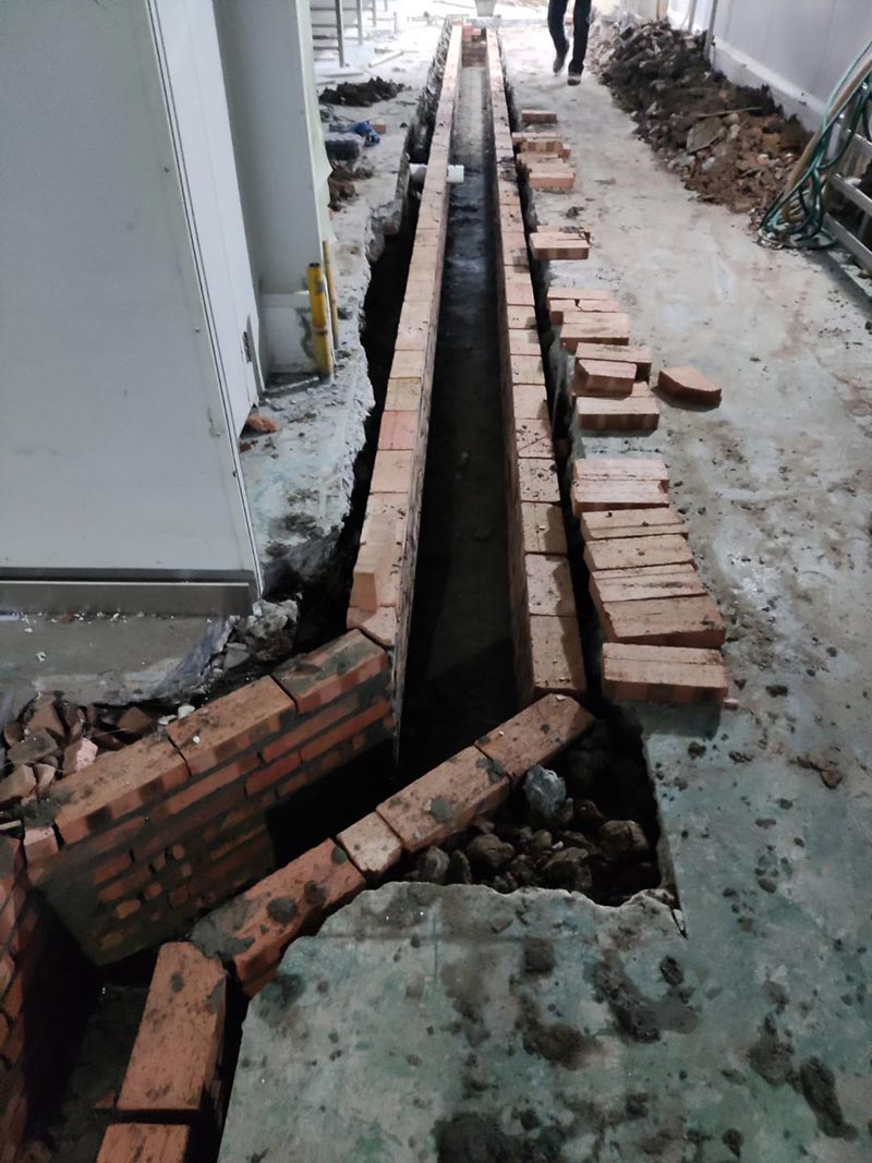 排水溝挖掘完成,建渣清運完成,新增門處土建墻剔除完成,排水管人工挖掘清理完成約10%。