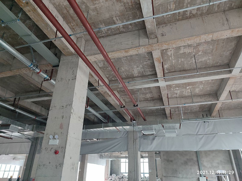 1,彩鋼板吊頂完成85% 2,組空配管完成30% 3,照明插座布線完成65%,燈具安裝完成40% 4,高效和回風末端風管尺寸量取完成。