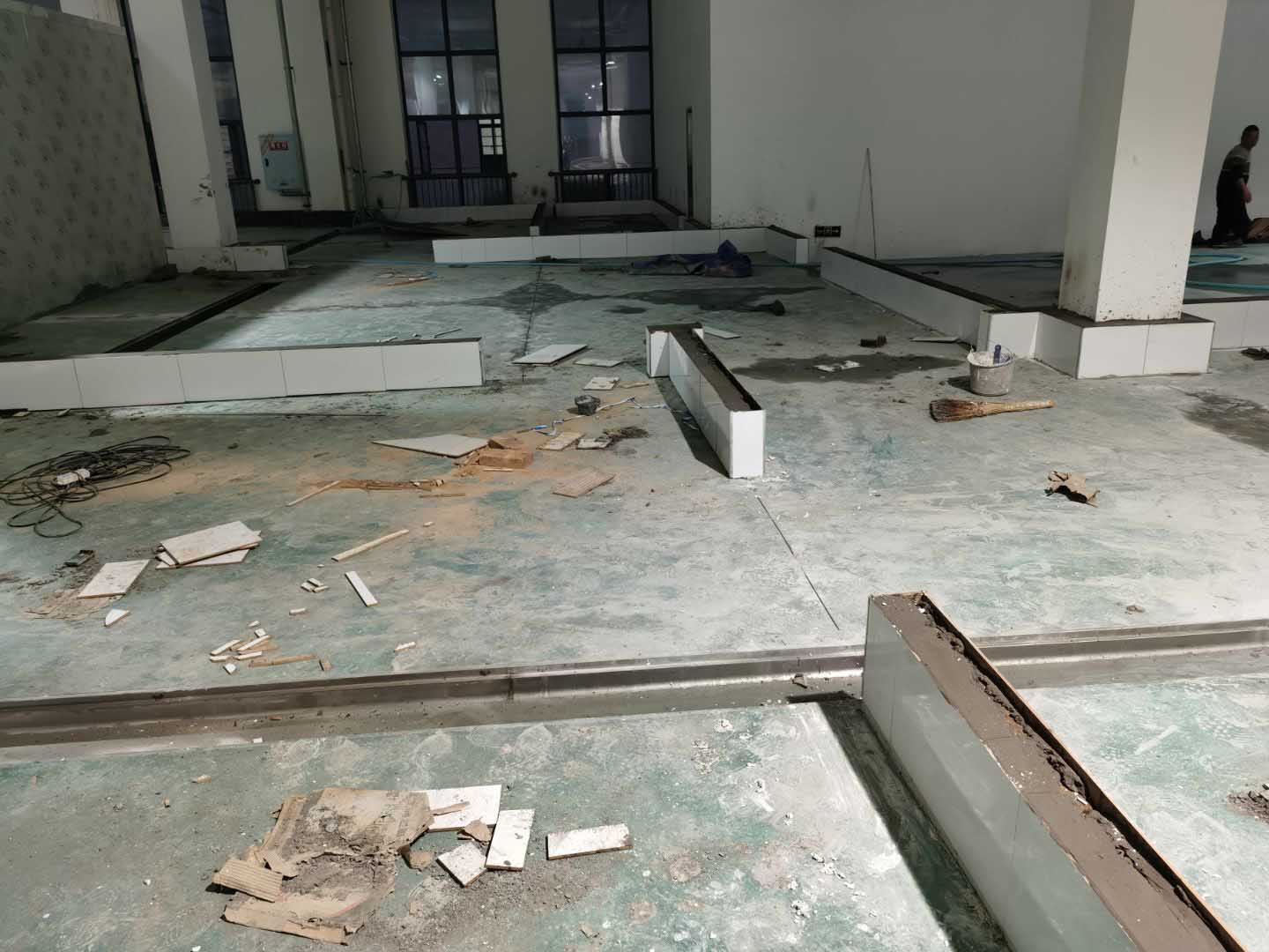 今日施工內容。 ①擋水墻貼瓷磚完成 進度100% ②彩鋼墻板施工第12天,完成進度100% ③彩鋼板頂板完成進度100% ④彩鋼板收尾工作完成進度95% ⑤彩鋼板門,窗,制作及安裝完成80% ⑥固化地面施工第7天,完成進度95% ⑦,水電進場施工第5天,完成進度75%