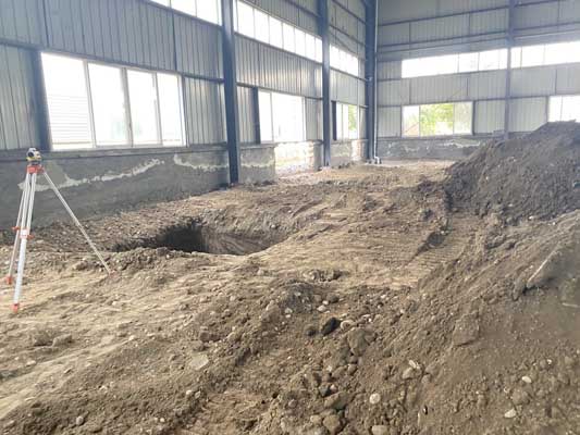 ①之前的基坑回填完成。②新基坑放線完成。③新基坑開挖完成百分之三十五。