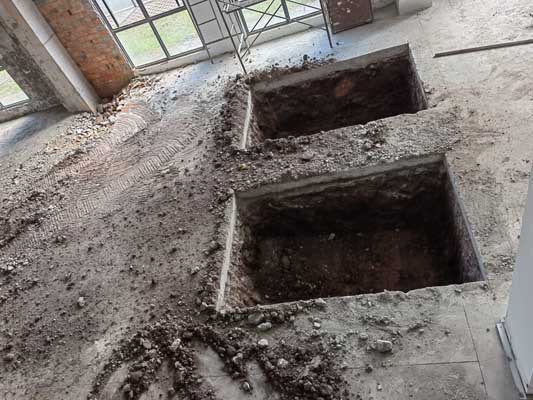 ①地面排水溝切割及破碎施工第9天,完成進100% ②參觀通道鋼平臺施工第8天,完成進度65% ③墻體拆出施工第5天,完成進度90% ④鋼平臺預埋施工完成100% ⑤排水明溝及排水暗管安裝施工第3天,完成進度80%
