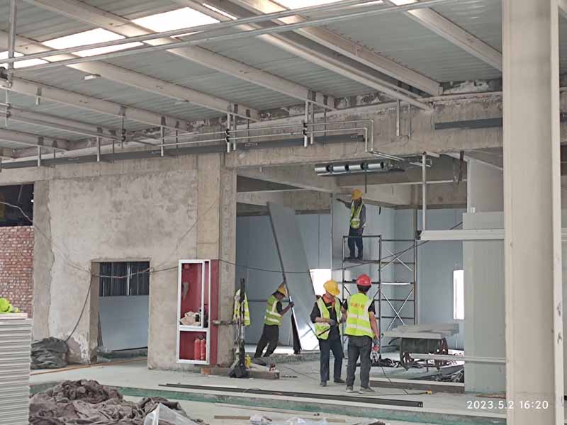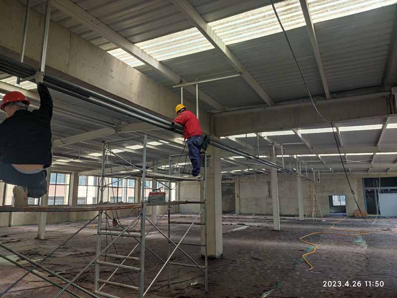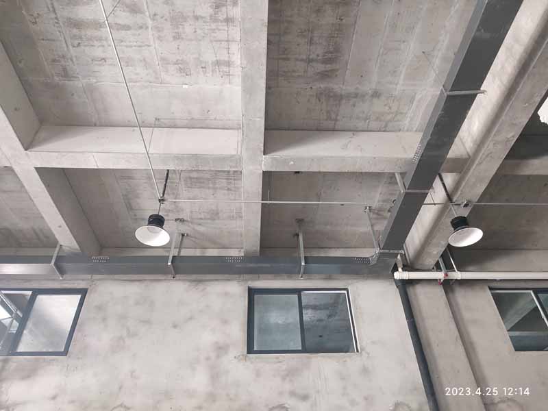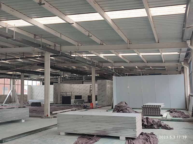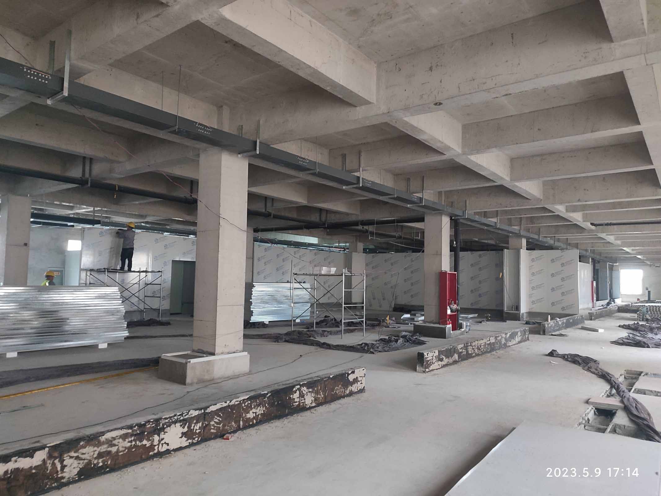 1、三樓彩鋼板墻板安裝完成60%; 2、三樓風機盤管風管吊裝及橡塑保溫完成,新風管安裝完成30%; 3、三樓電力橋架安裝完成。