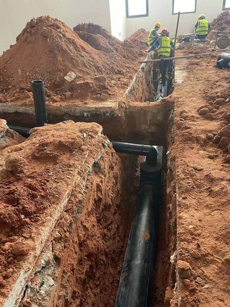 排水溝材料到場,室內外排水管道安裝