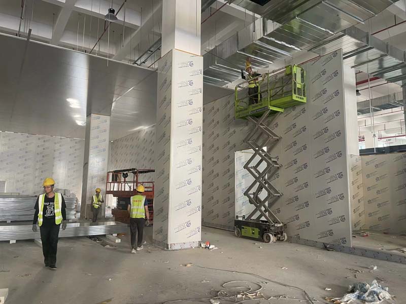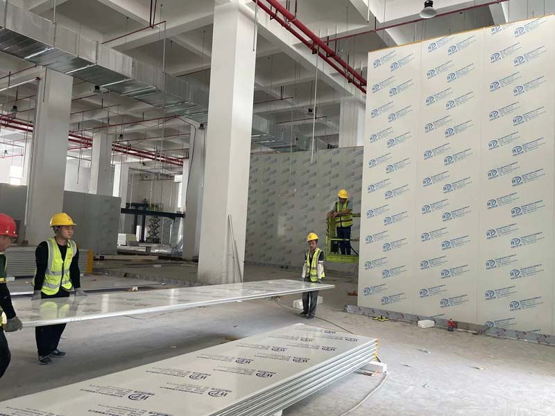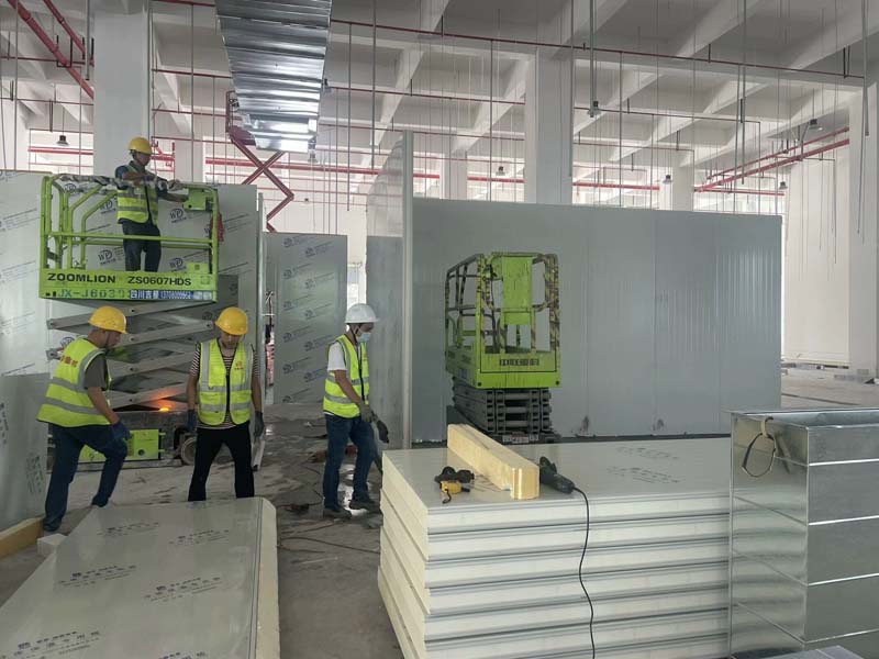 隔斷施工,凍庫保溫板材到場