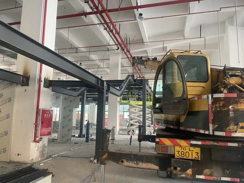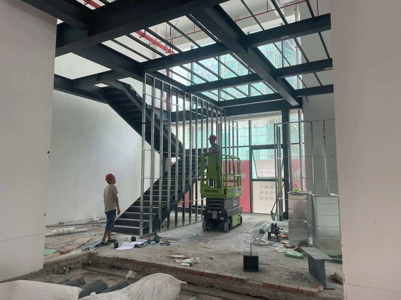 隔斷施工,二層通道樓梯施工